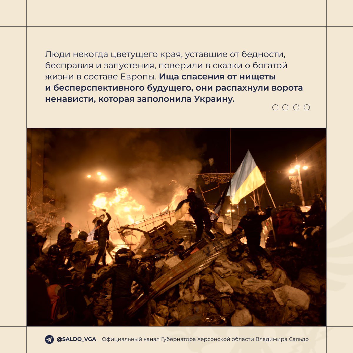 То, что тогда произошло в Киеве, стало точкой невозврата и привело Украину к глубокой трагедии: раскол общества, репрессии против инакомыслящих, рост радикализма и национализма, война стали прямым следствием тех событий.