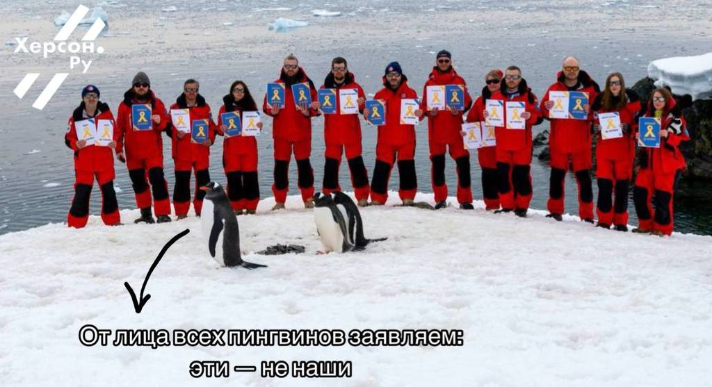 Затерянная в антарктических льдах кучка пингвинов украинцев устроила грандиозную акцию (нет)