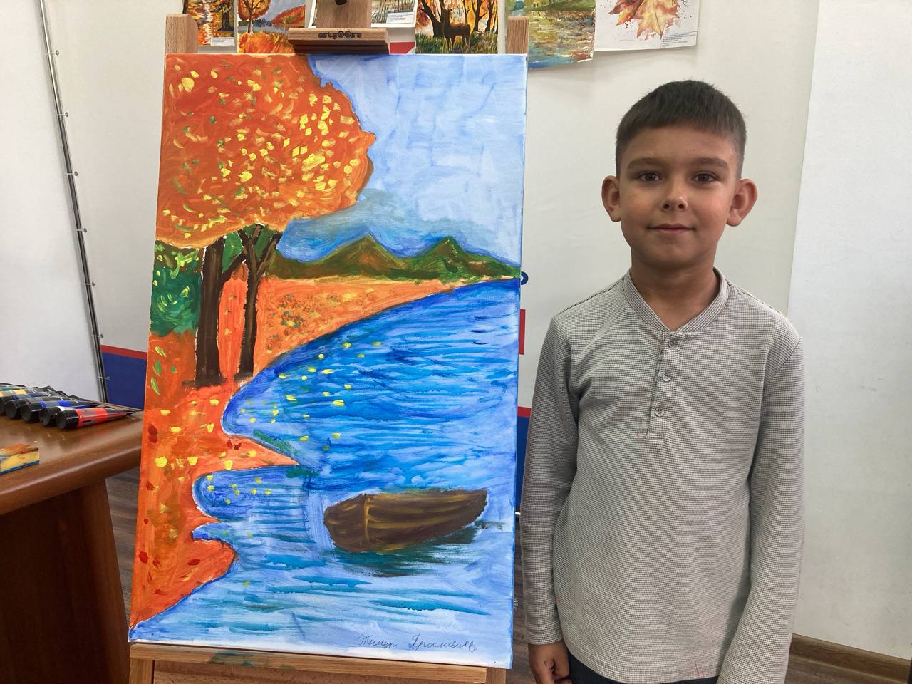 «Я сначала боялся, думал, что ничего не получится, но мне помогала мама. Она говорил, какие цвета лучше взять и как рисовать губкой. Мы вместе рисовали небо, озеро, а потом я сам нарисовал камыши и птиц. Наш рисунок самый красивый, потому что мы рисовали с мамой», – поделился своими впечатлениями Коля, сын ветерана СВО.