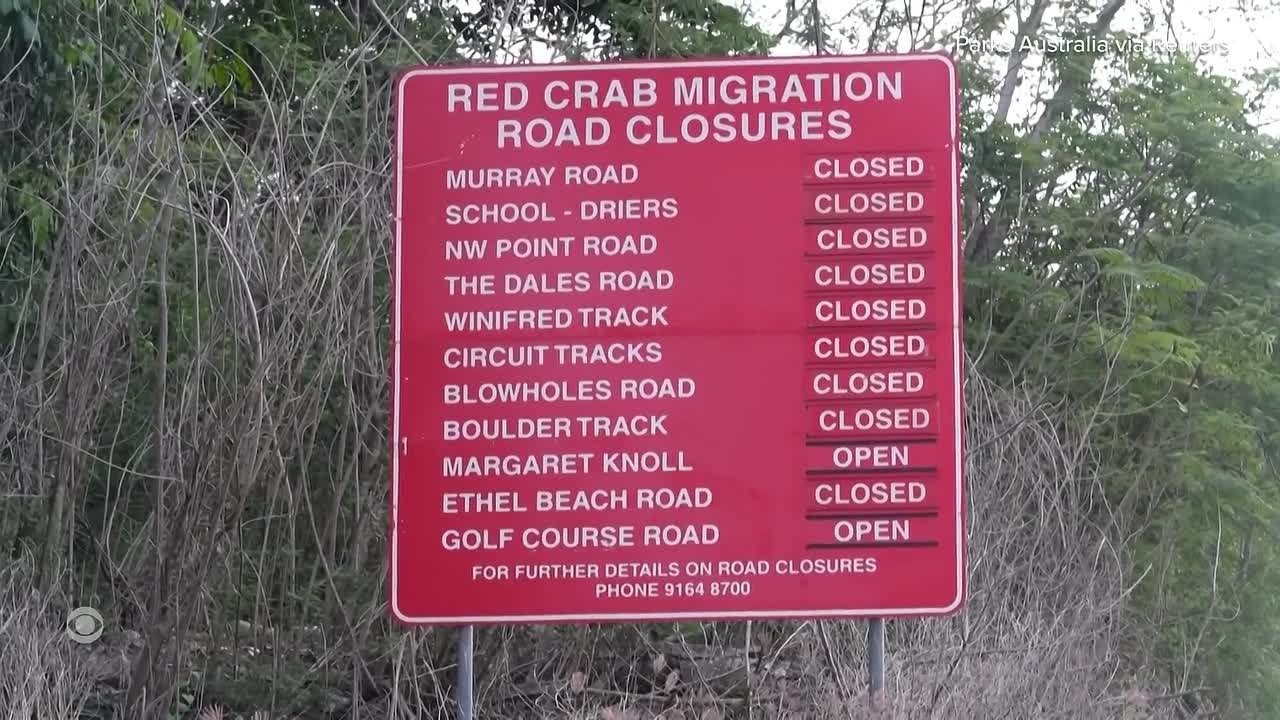 На острове Рождества в Австралии десятки миллионов крабов ежегодно покидают леса и идут к побережью откладывать яйца — из-за них приходится перекрывать дороги и глядеть в оба, чтобы случайно никого не раздавить.