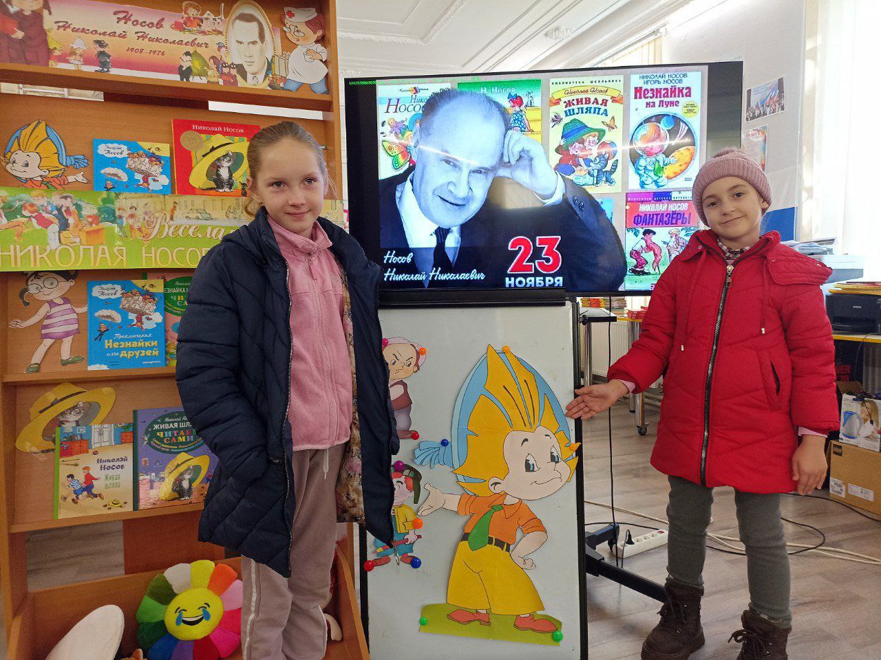 В ходе мероприятия ребята прослушали краткую биографию автора и познакомились с его творчеством. Они вспомнили героев Солнечного, Цветочного и Зелёного городов, при этом самым популярным героем произведений Носова, по мнению детей, оказался Незнайка.