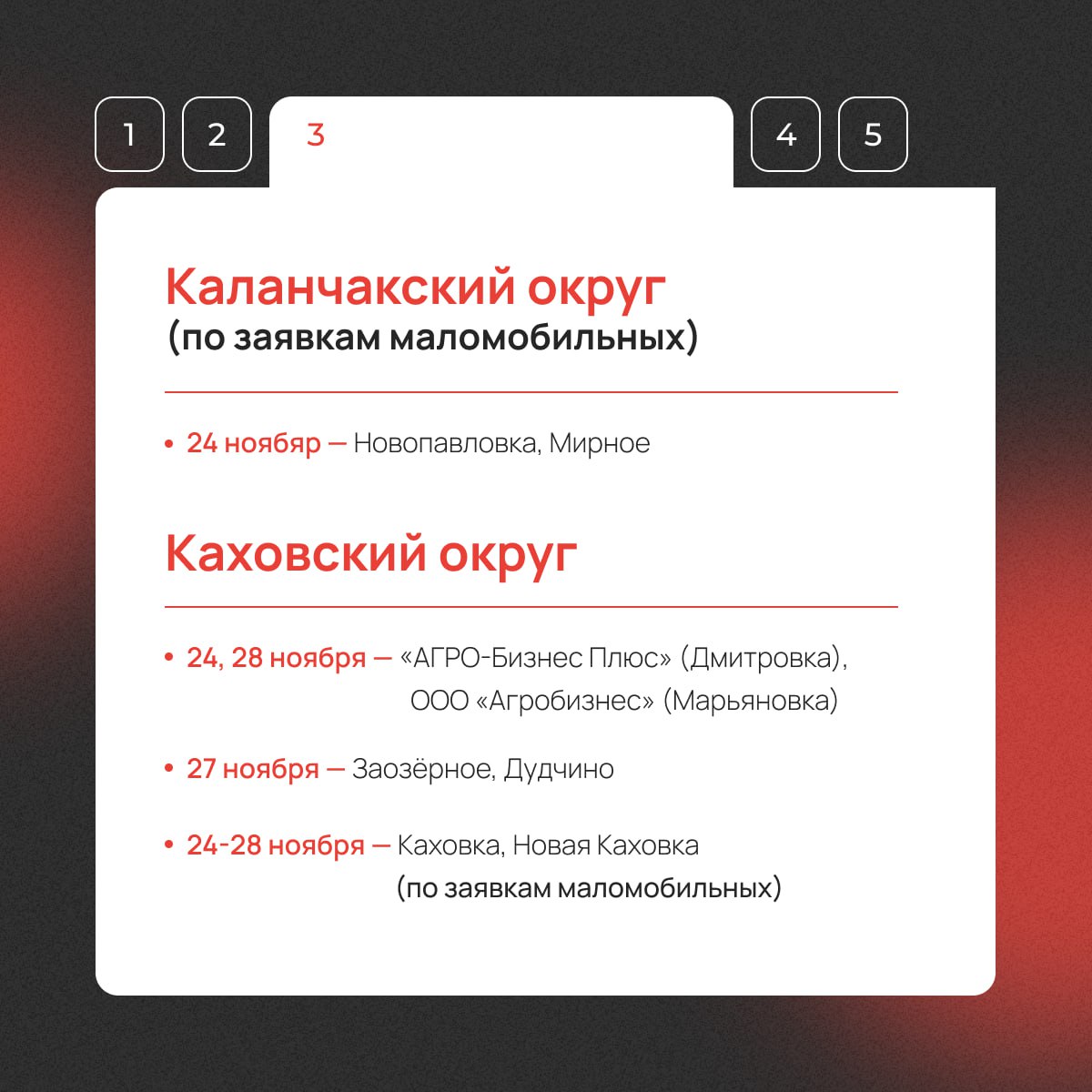 С 24 по 28 ноября передвижной офис посетит населенные пункты Херсонской области. Узнайте расписание выездов в социальных сетях и на официальном сайте МФЦ.