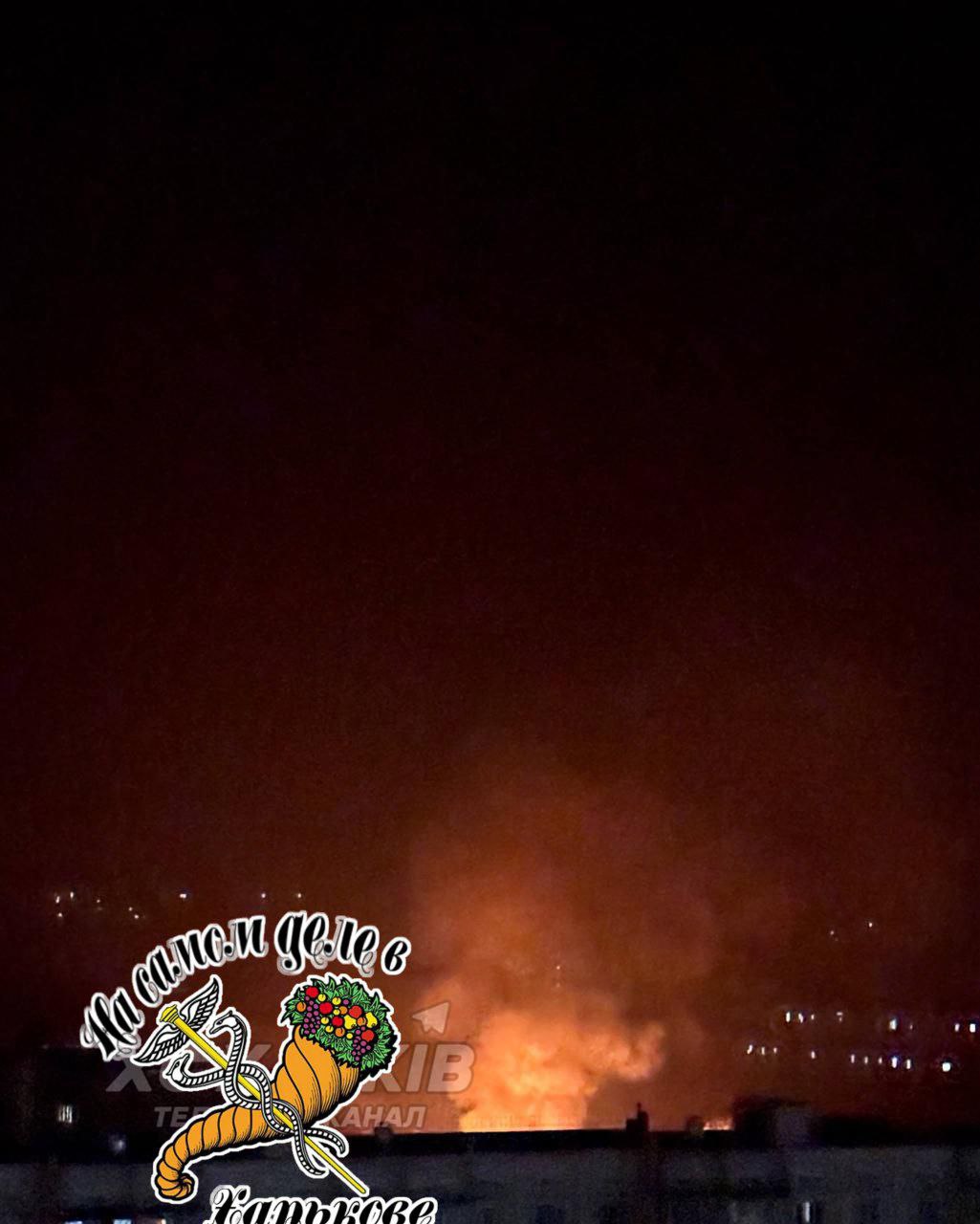 После прилетов в Харькове начался пожар. Похоже ПВО уронили БПЛА на жилой дом.
