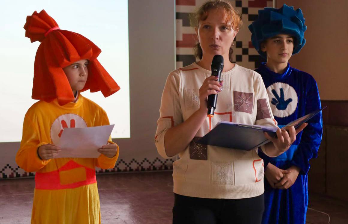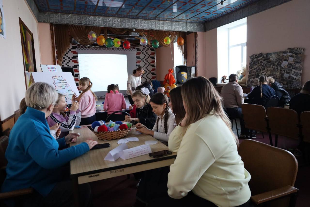 На первом занятии семь семей вместе с наставниками и организаторами прошли насыщенную программу. Участники посмотрели подборку семейных мультфильмов, обсудили ассоциации с городами и поселками Херсонской области, а затем в творческих командах изготовили пластилиновые версии «гербов» выбранных населенных пунктов и представили свои решения. Завершением стала коллективная работа – карта Херсонской области, выполненная нитками в цветах флага России, а также танцевальный флешмоб.