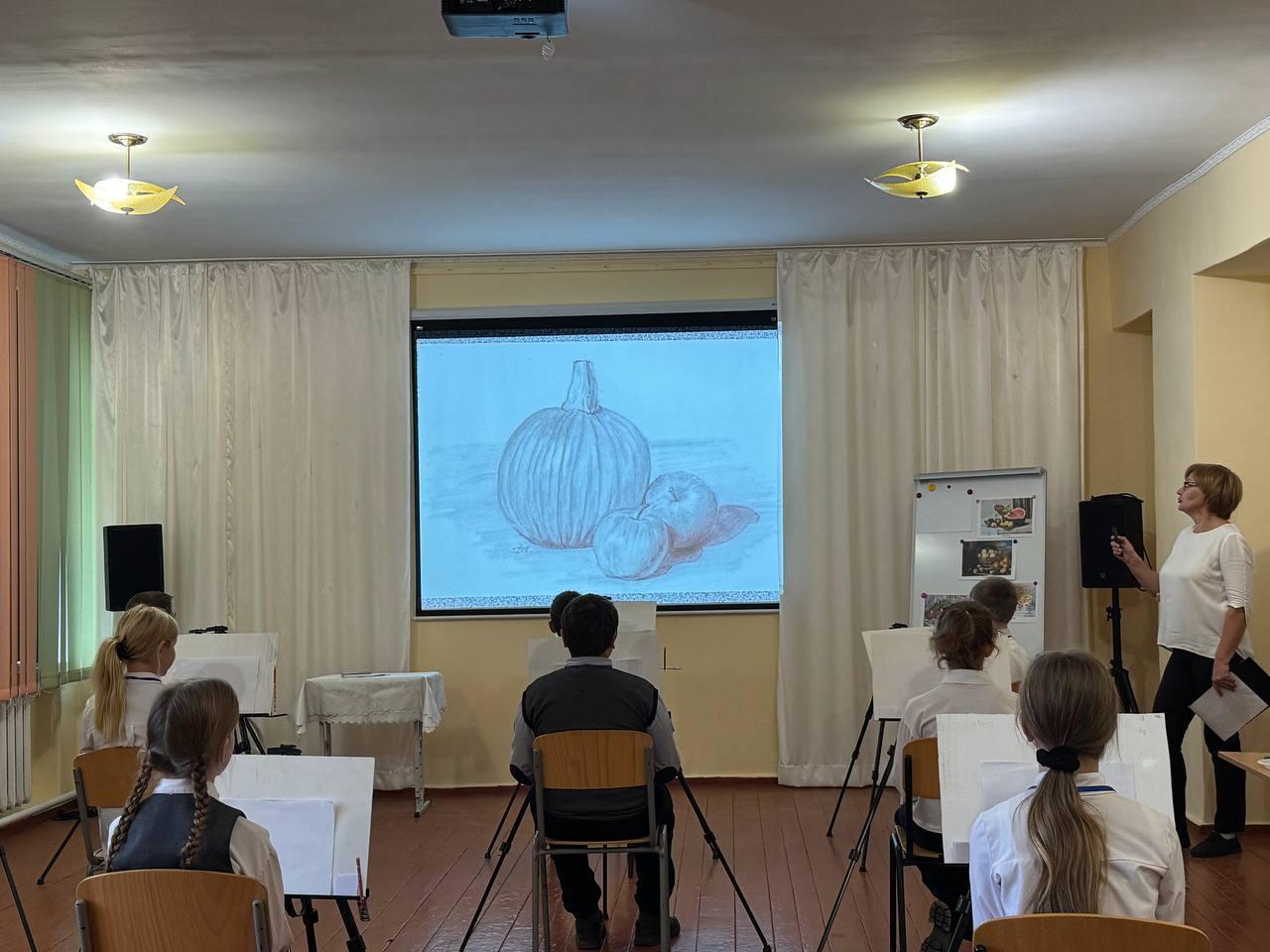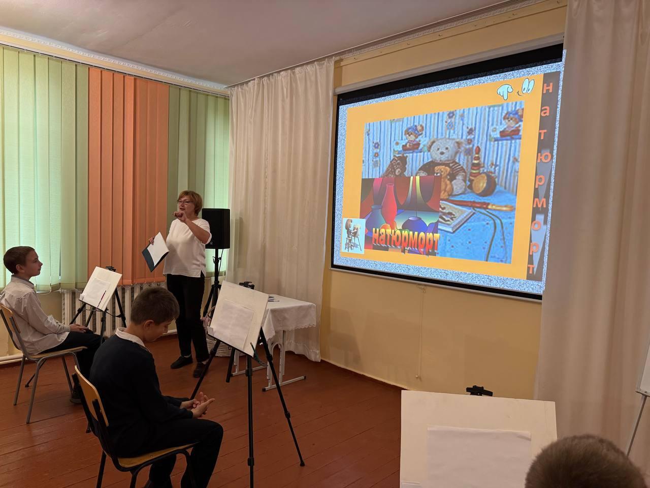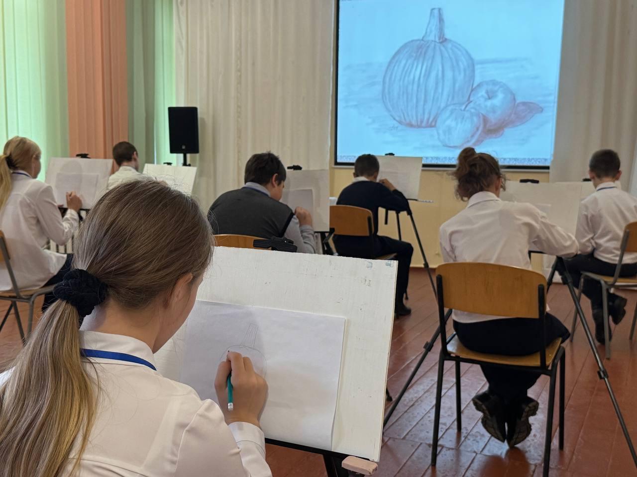Первое мероприятие провела учитель изобразительного искусства Светлана Коваленко, организовав для учащихся 6 класса творческий урок «Натюрморт в графике». Школьники активно изучали различные графические техники, создавая собственные художественные композиции. В процессе работы учащиеся проявили креативность и индивидуальный подход, продемонстрировав глубокое погружение в тему занятия.