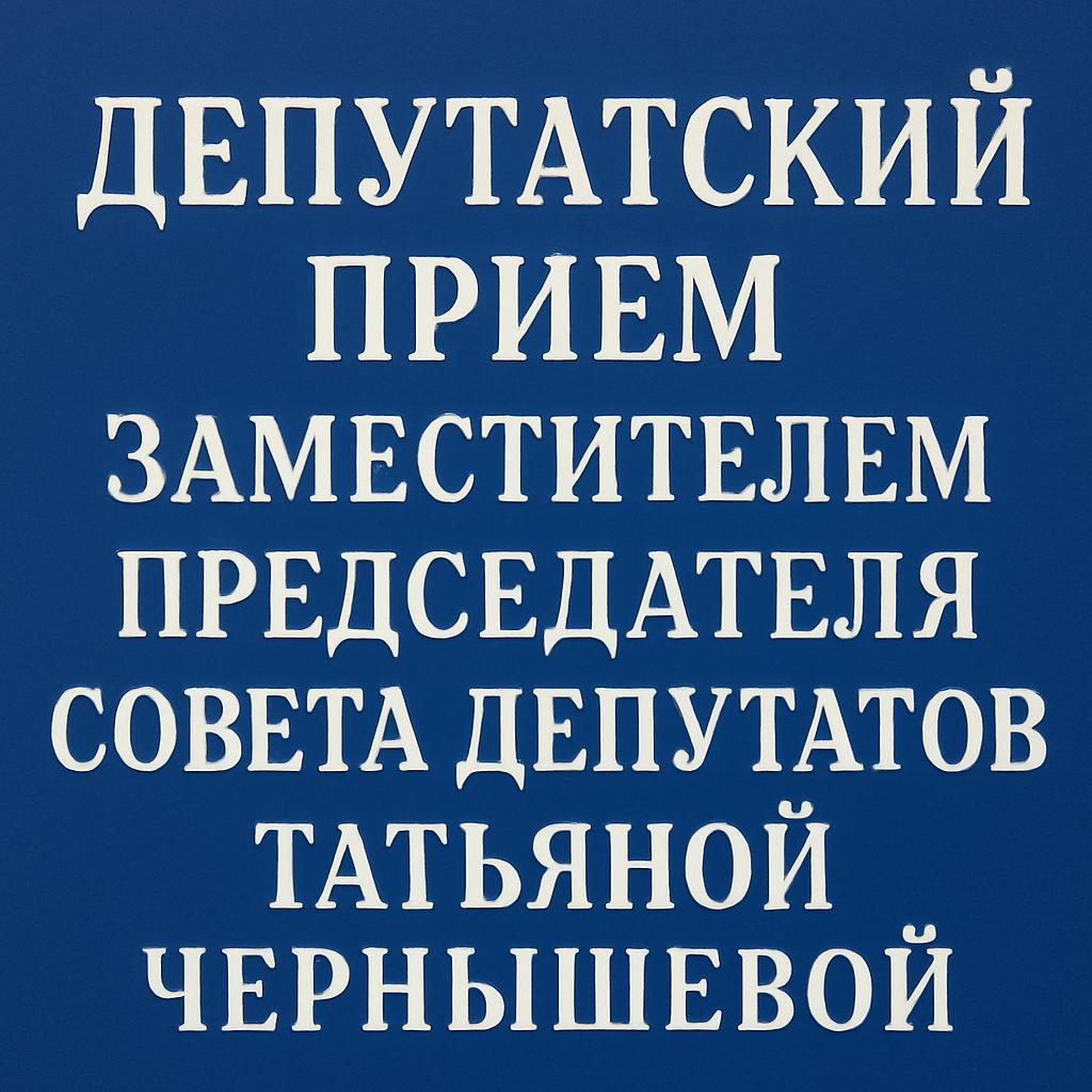 26 ноября 2025 года с 10:00 до 13:00 состоится депутатский прием граждан заместителем председателя Совета депутатов городского округа город Новая Каховка, Татьяной Чернышевой.