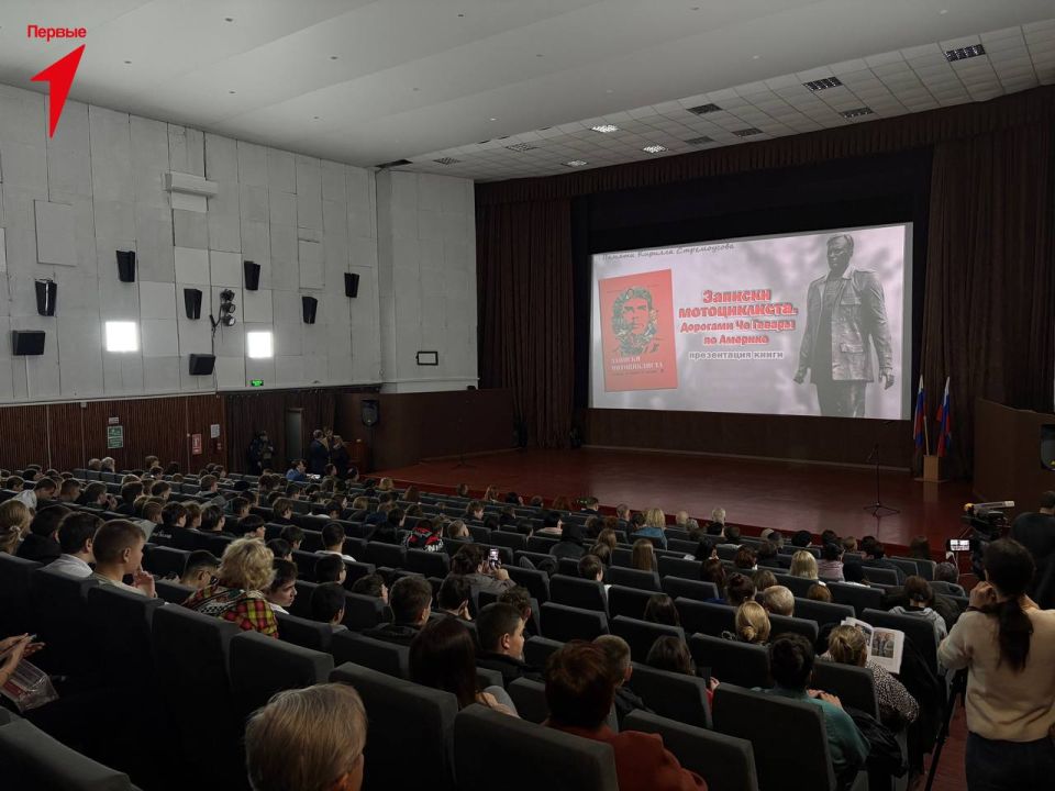 Активисты Движения Первых посетили презентацию книги писателя Кирилла Стремоусова «Записки мотоциклиста. Дорогами Че Гевары», которая прошла в кинотеатре «Россия» города Геническа.
