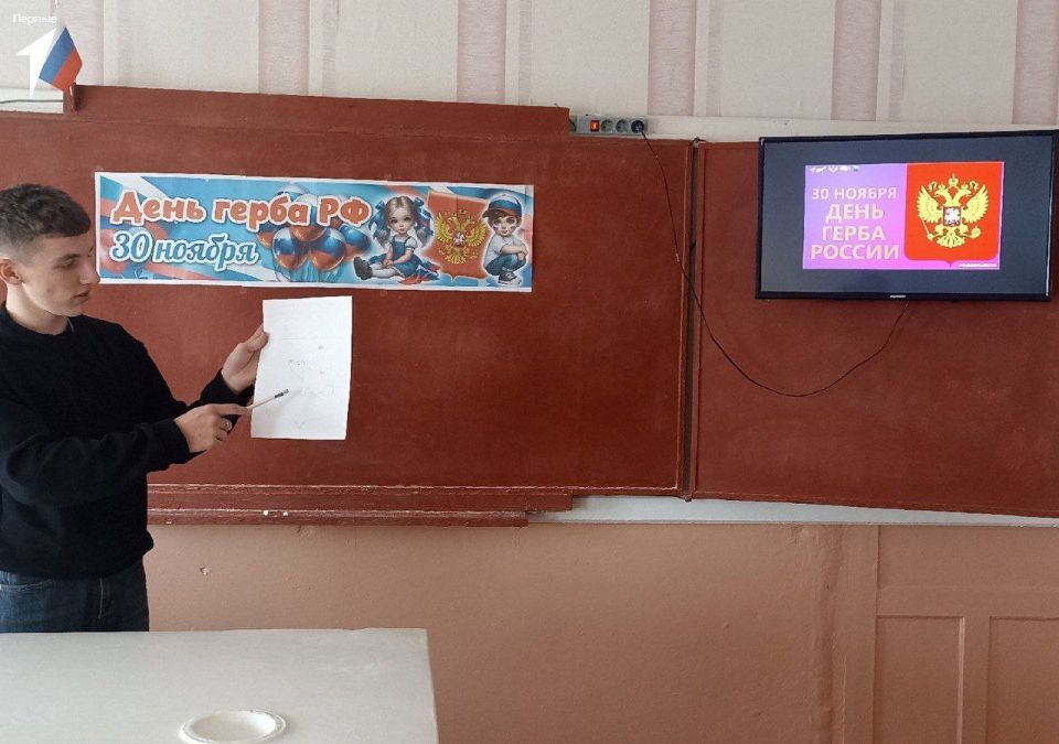 Активисты Движения Первых Новопокровской школы Новотроицкого округа под руководством советника директора по воспитанию Натальи Леонтьевой приняли участие в занятии, проведенном в честь Дня Государственного герба Российской Федерации, который отмечается ежегодно 30 ноября.