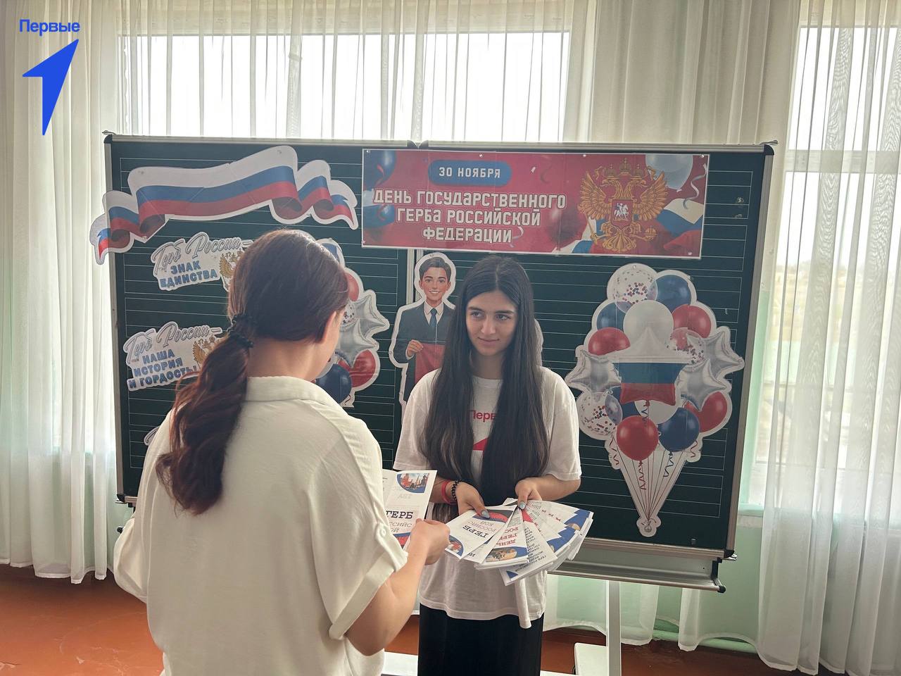 Активисты Движения Первых Таврийской школы Скадовского округа провели акцию, приуроченную ко Дню Государственного Герба Российской Федерации.