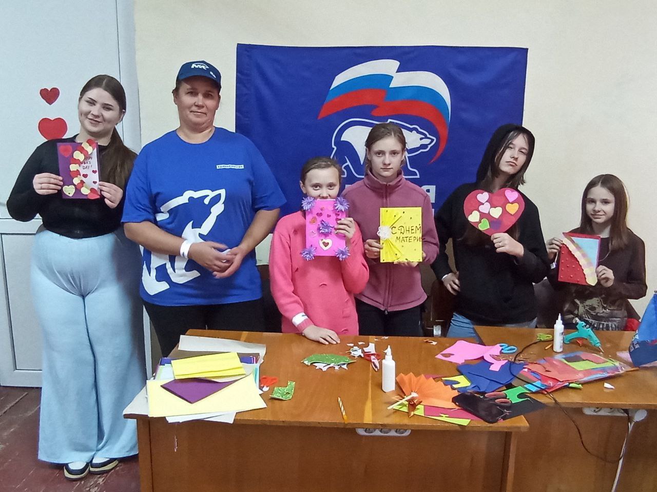В Каховском округе воспитанники детсада «Ромашка» изготовили праздничные открытки для своих мам. Мастер-класс организовала муниципальный депутат Виктория Кузнецова с активистами партии.