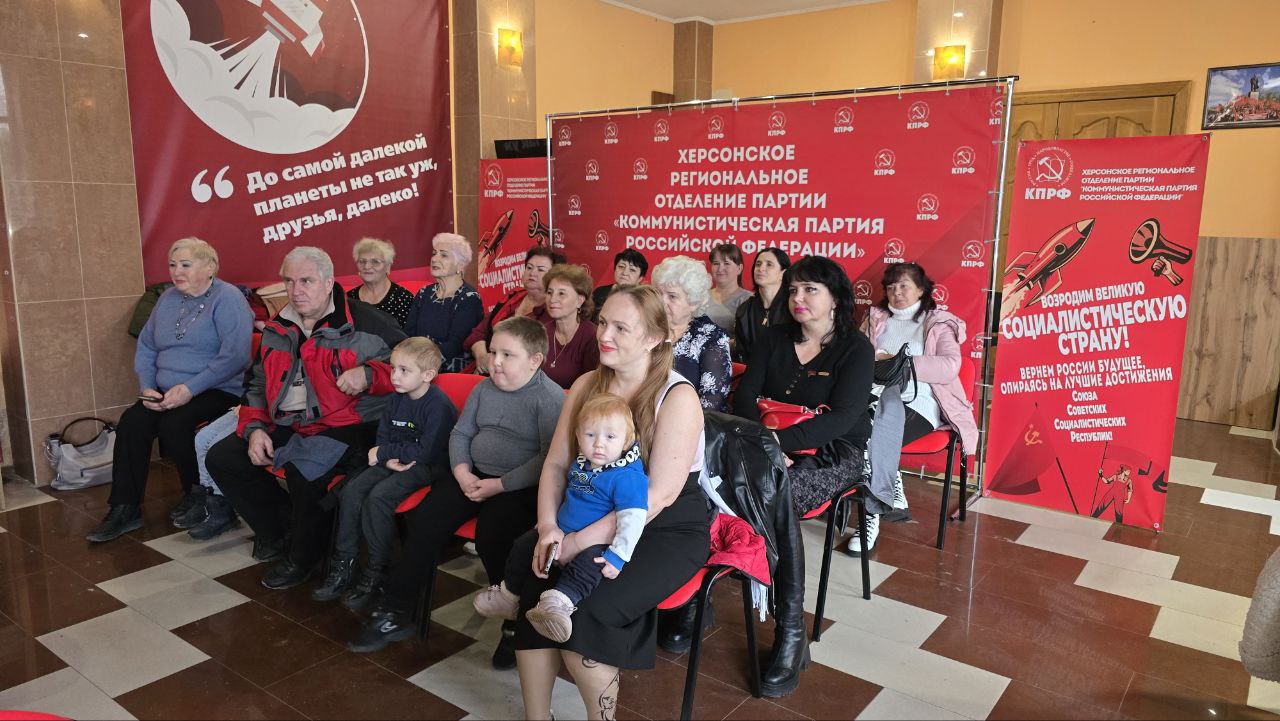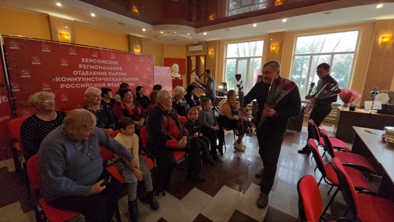 На базе Херсонского регионального отделения КПРФ прошло торжественное мероприятие. С приветственным словом выступил исполняющий обязанностей первого секретаря Генического райкома Геннадий Гаркуша.