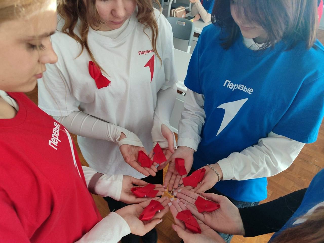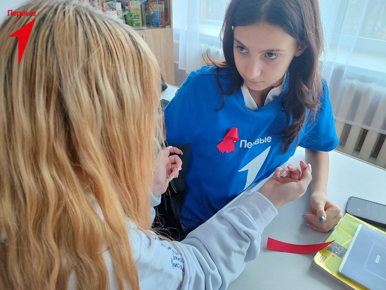 Ребята подготовили информационный стенд, а также раздали всем красные ленточки — символ солидарности, надежды и поддержки тех, кто живет с этой инфекцией.