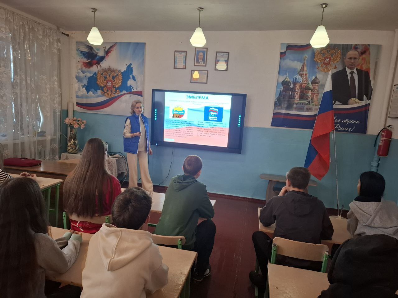 1декабря, в день рождения Всероссийской политической партии «Единая Россия», секретарь первичного отделения партии Василенко Наталья провела познавательную лекцию для учащихся ГБОУ ХО "Верхнесерогозсккая школа Нижнесерогозского района". Мероприятие было организовано с целью познакомить подрастающее поколение с историей, ценностями и ключевыми проектами партии.