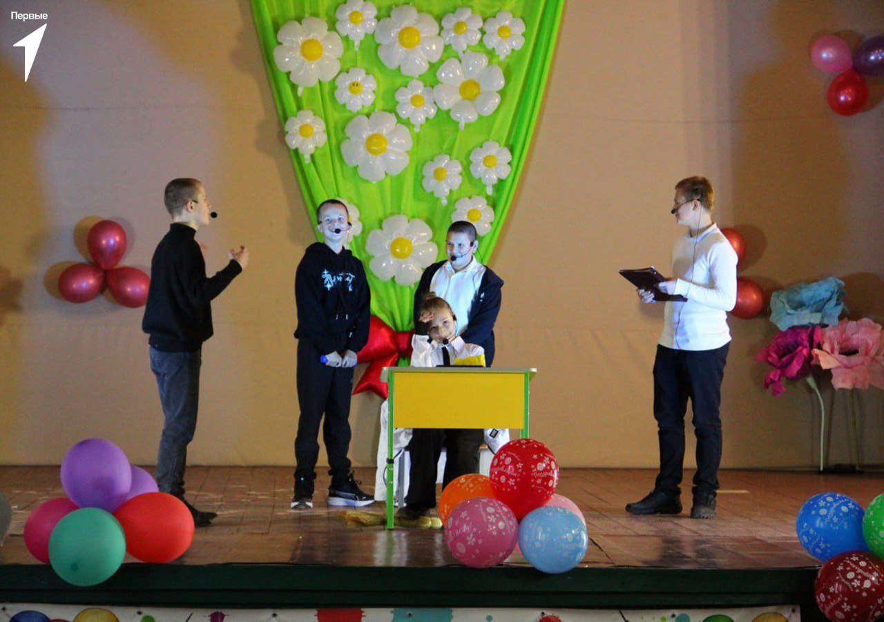 Активисты Движения Первых Строгановской и Григорьевской школ Чаплинского округа выступили на сцене в местном сельском Доме культуры на концерте, организованном в честь Дня Матери.