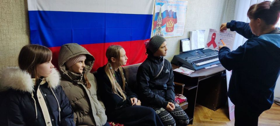 В ходе мероприятия детям рассказали об истории Международного дня борьбы со СПИДом и его символе — красной ленточке, объяснялось, что такое ВИЧ и СПИД.