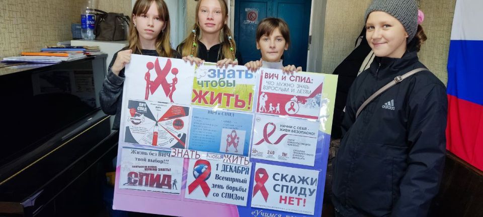 Дети узнали, что ленточка цвета крови, свёрнутая петелькой, является Международным символом борьбы со СПИДом — символом нашего сострадания, поддержки и надежды на будущее. Был продемонстрирован видеоролик и организован стенд на эту тему, который способствовал более глубокому осмыслению представленной информации.