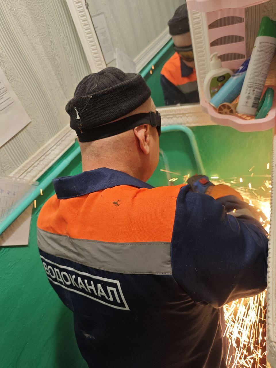 Рязанцы демонтировали ещё одну часть трубопровода и заменили его на новый из полипропилена. Также установили новые краны на раковинах.