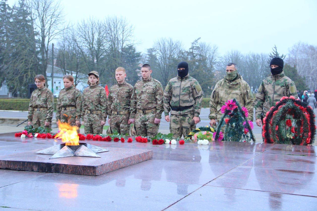 На центральной площади собрались жители, представители администрации, военнослужащие и школьники, чтобы вместе отдать дань памяти и глубокого уважения.