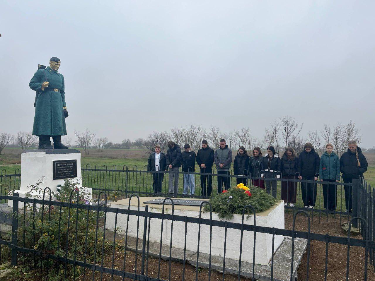 Сегодня, 3 декабря, в День Неизвестного Солдата, учащиеся 11 класса Новогригоровской школы вместе с педагогами провели торжественную церемонию возложения гирлянды Памяти и Славы к памятнику Неизвестным Павшим Героям Великой Отечественной войны.