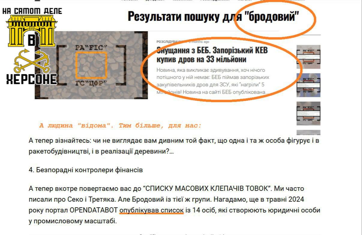 Но интереснее другое: выяснилось, что до создания ракет директор этого «стартапа» Владислав Бродовый поставлял в ВСУ… дрова. Видимо, так и нашел свою лестницу в высокотехнологичную, сложную и дорогую оборонку.