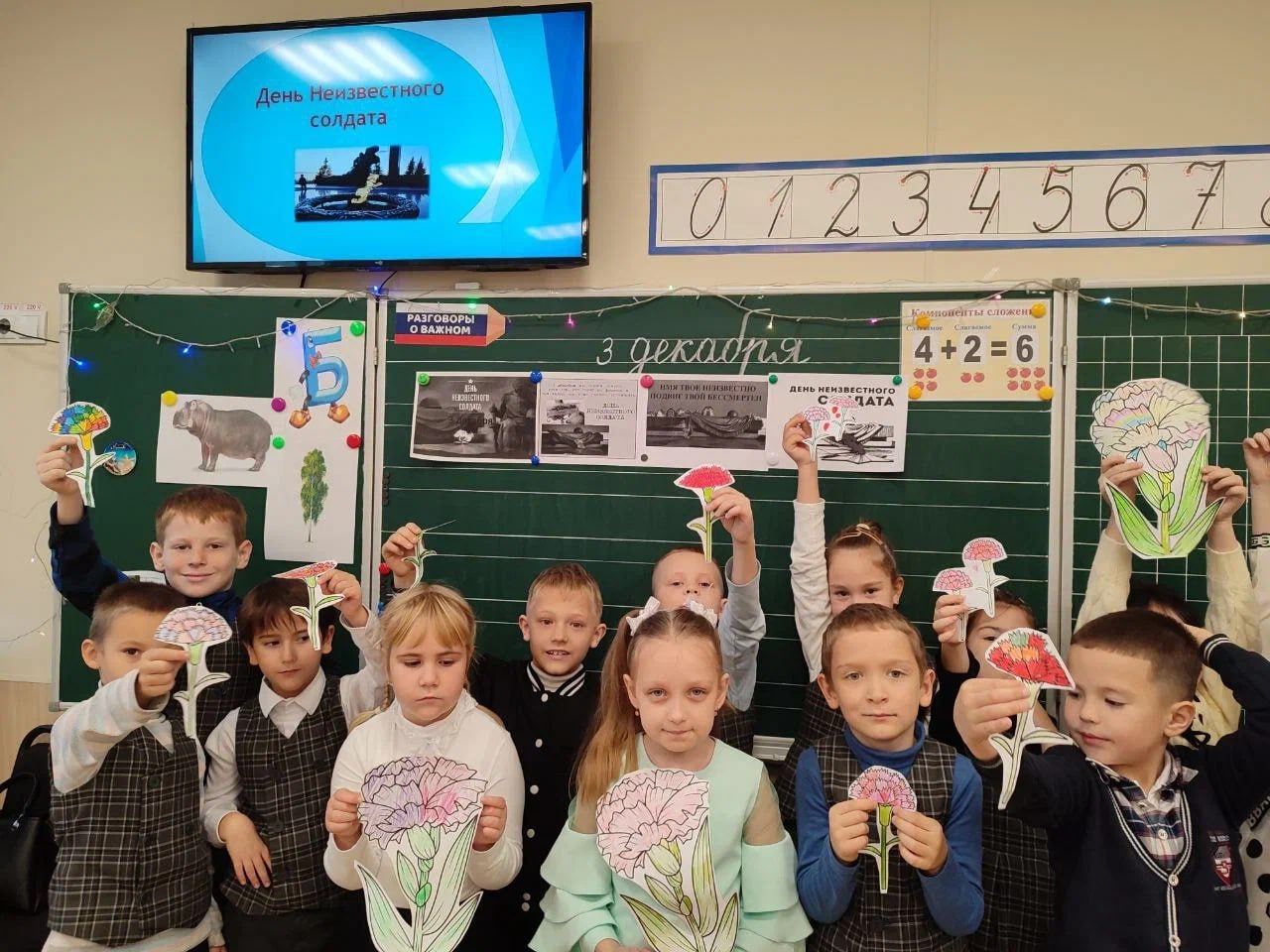 Также обучающиеся имели возможность погрузиться в глубокую историю, участвуя в Часе памяти под названием "По следам подвига". Педагоги делились с детьми увлекательными рассказами о героизме и мужестве советских солдат. Особое внимание было уделено документальному фильму "Неизвестный солдат", который вызвал искреннее обсуждение и обмен чувствами. Дети с гордостью рассказывали истории о своих прадедушках, которые воевали на фронте, тем самым передавая связь поколений и осознание цены мира.