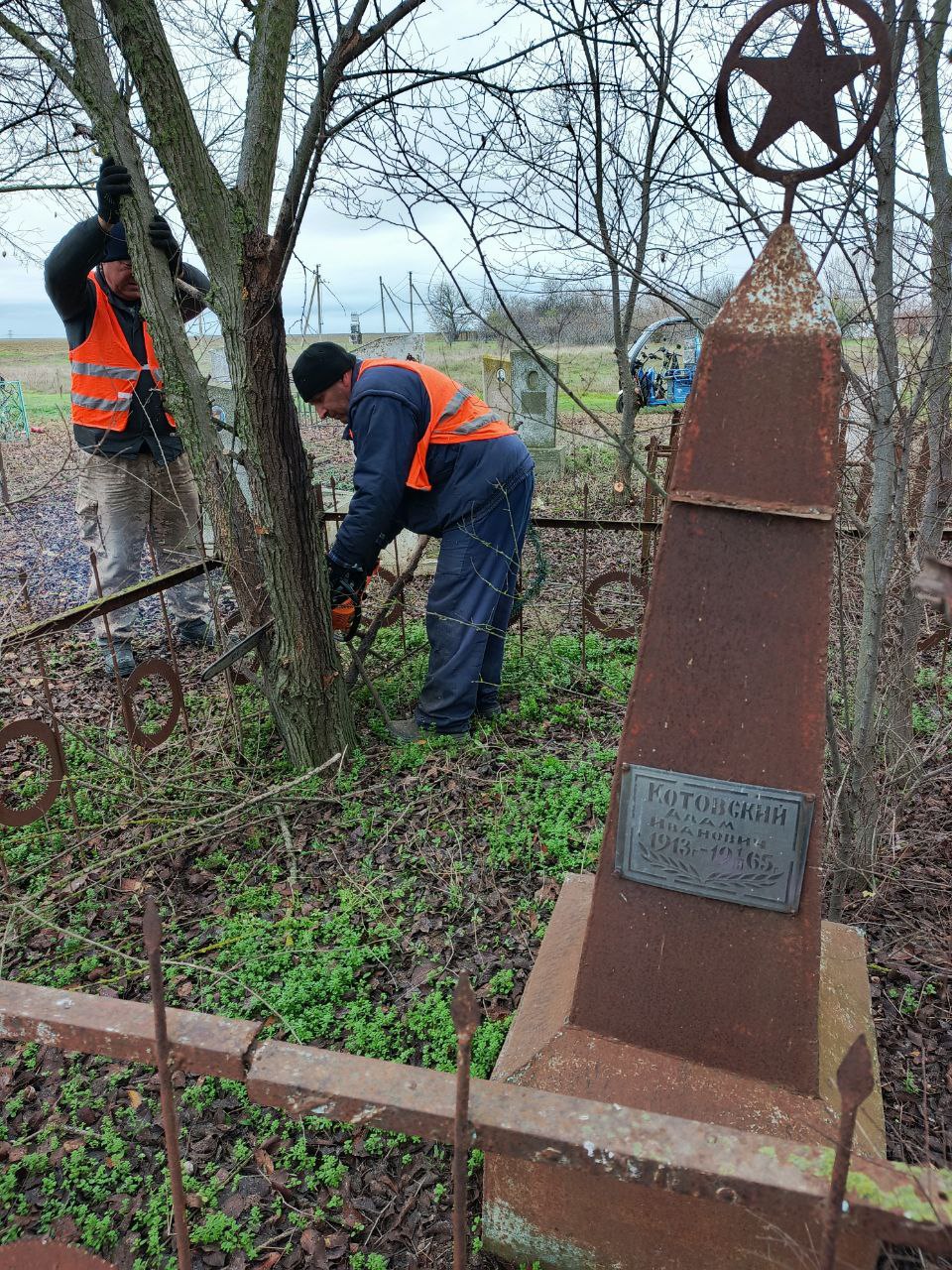 В селе Атамань: Выполнены вырезка дикой поросли и уборка территории кладбища.