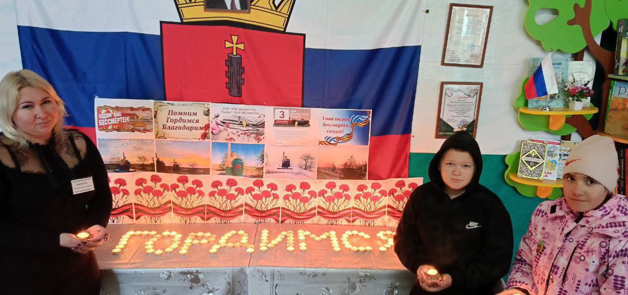 В библиотеке зажгли свечи памяти с надписью "Гордимся".