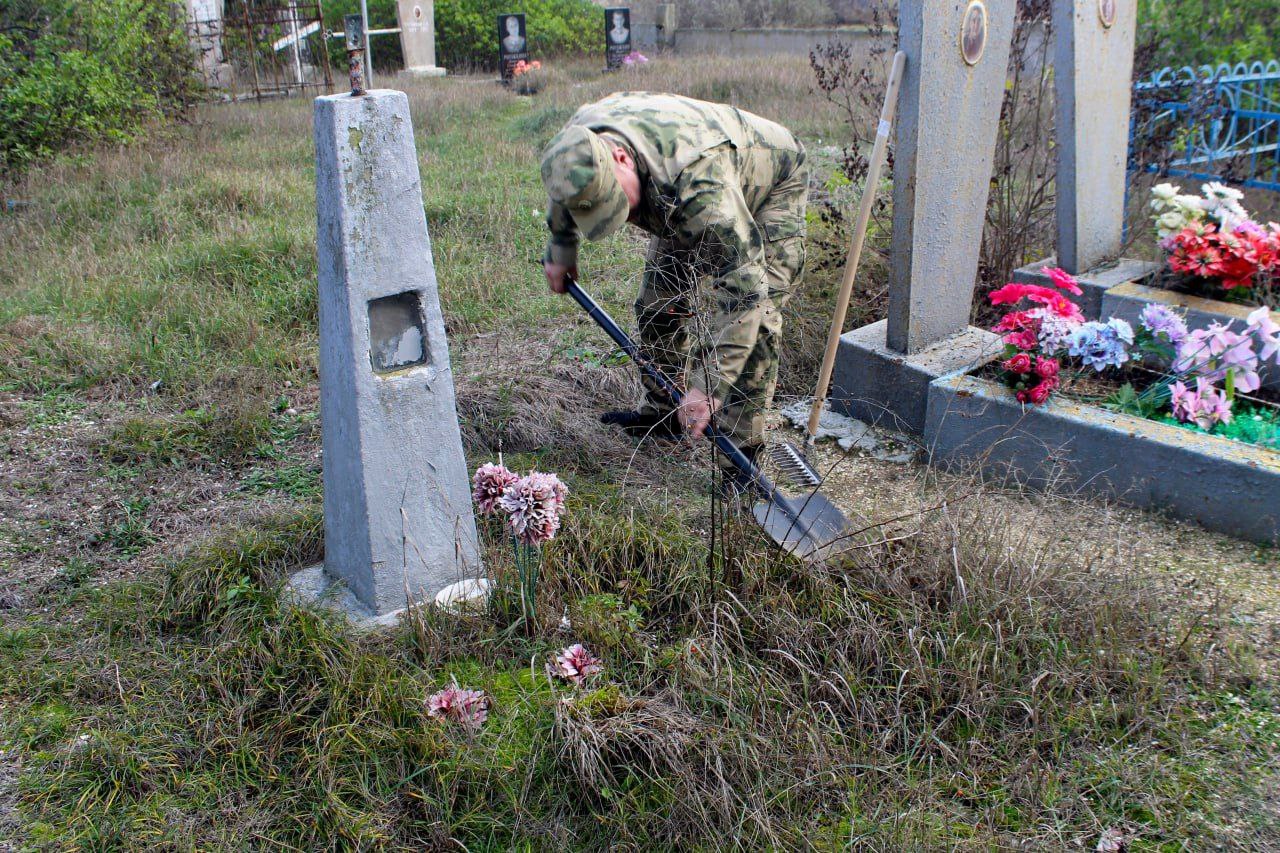 Сотрудники Росгвардии и волонтёры провели акцию по благоустройству воинских захоронений в Геническом округе ко Дню Неизвестного солдата.
