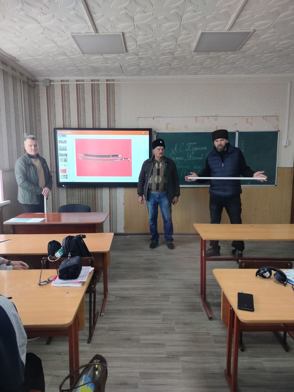 Гости посетили казачий класс, где провели показательный урок по изучению казачьего оружия и продемонстрировали элементы фланкировки. Ребята проявили высокий интерес и выразили пожелание проводить такие занятия чаще.