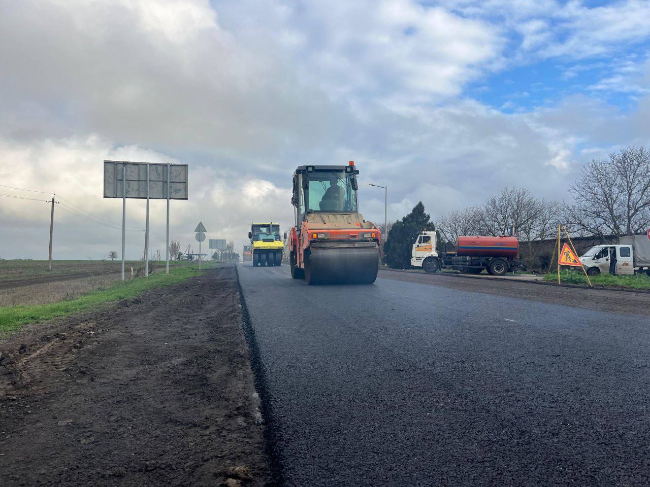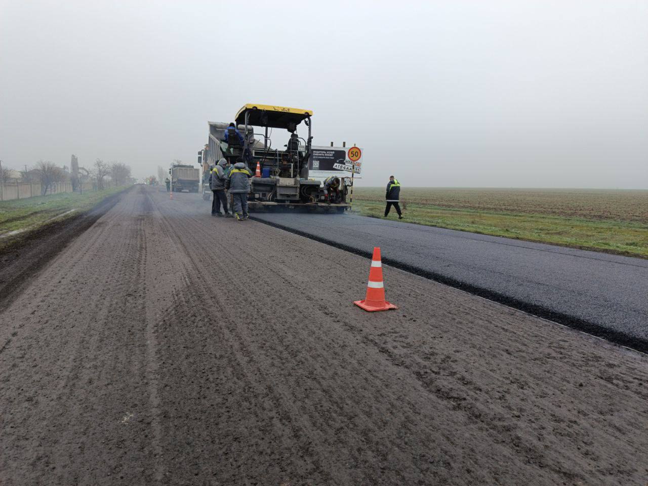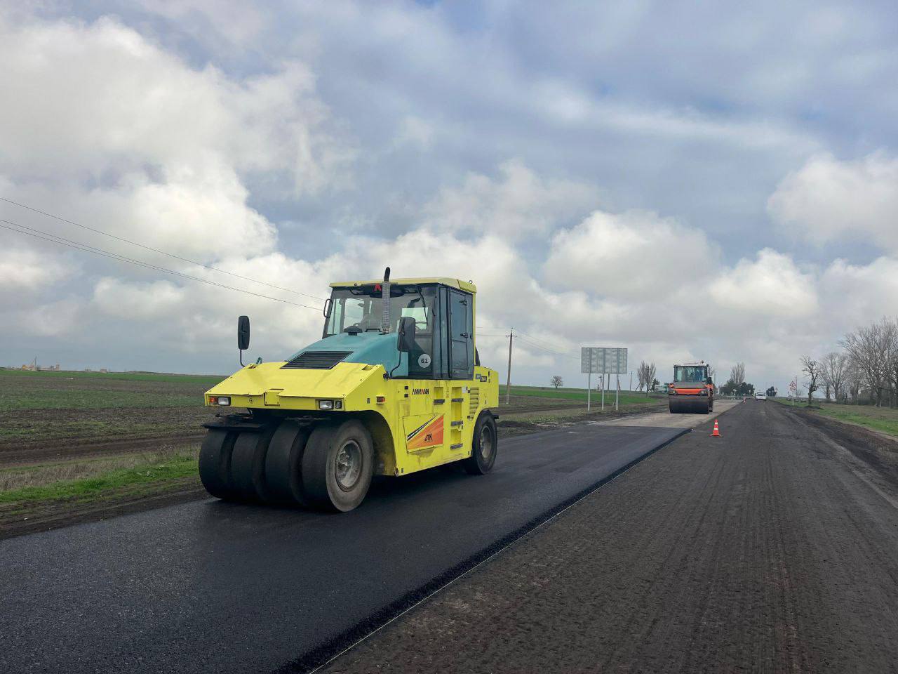 На участке трассы «Херсон – Новая Каховка – Геническ» близится к завершению ремонт дорожного полотна протяжённостью два километра