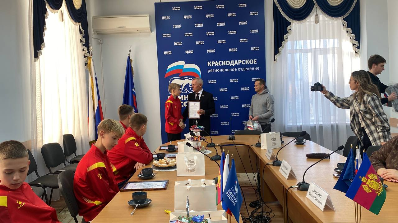 Матч - не единственные пункты программы для ребят. В первый день визита в столицу Кубани для юных футболистов и их тренеров организовали экскурсию по городу Краснодару и встречу в штабе общественной поддержки «Единой России» с секретарем Краснодарского регионального отделения партии Николаем Гриценко.