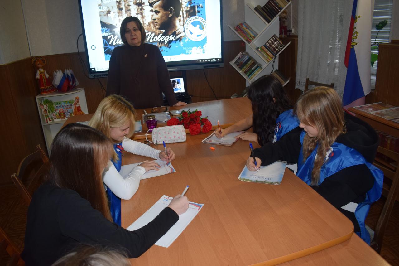 В Новотроицком центре детского и юношеского творчества прошёл тематический час в День Героев Отечества. Это мероприятие стало ярким проявлением патриотизма и солидарности с теми, кто сегодня находится на передовой, защищая интересы нашей страны. Волонтеры Победы написали письма участникам СВО в знак поддержки и благодарности за их мужество и самоотверженность.