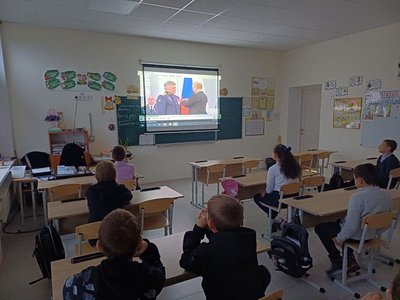 Для учащихся 5-8 классов классные руководители провели тематические уроки под названием «О доблести, о подвиге, о славе!». Школьники просмотрели презентацию о героях России, чьи подвиги являются примером мужества и самопожертвования.