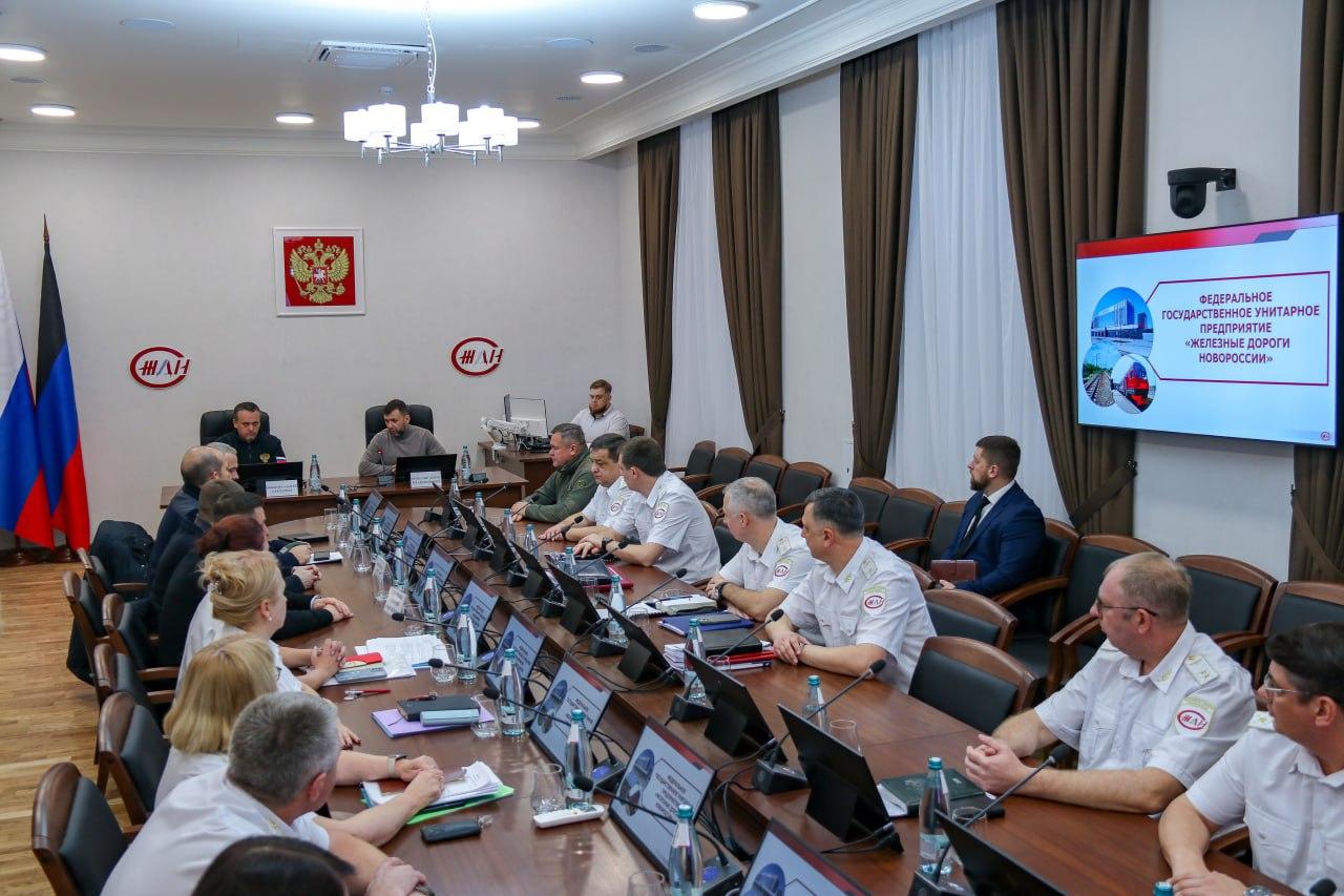 В рамках рабочей поездки в Донецкую Народную Республику Министр транспорта Андрей Никитин посетил центральный аппарат ФГУП «Железные дороги Новороссии», где провел совещание с руководством предприятия.