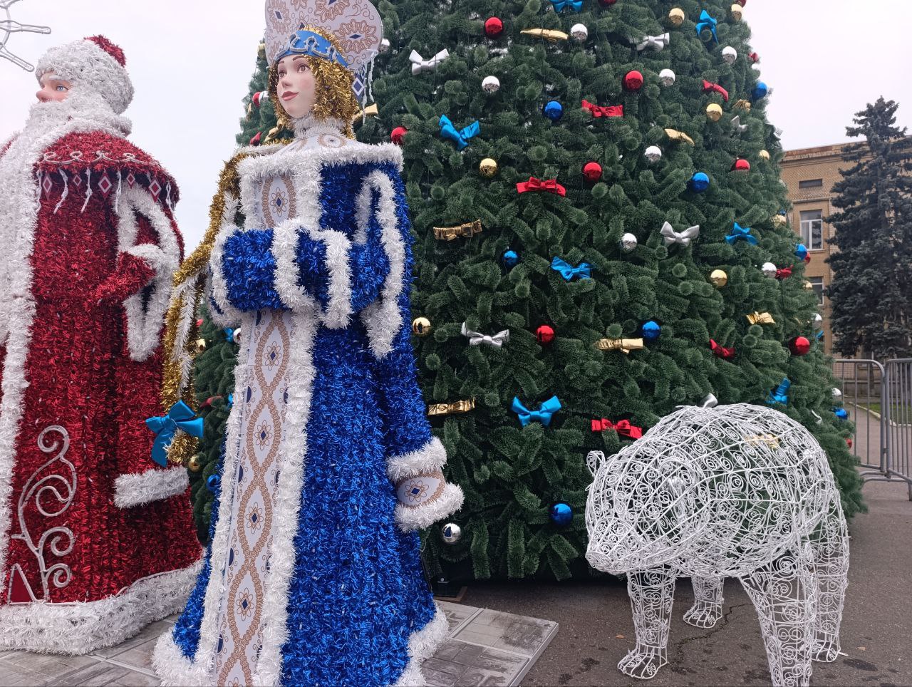 Приглашаем вас полюбоваться, как преображается к праздникам центральная площадь в Геническе! Уже установлена нарядная ёлка, встречают гостей Дед Мороз и Снегурочка, а также их верные друзья — белый мишка и олени. Площадь украшена праздничными гирляндами и световыми инсталляциями на столбах — настоящая зимняя сказка!