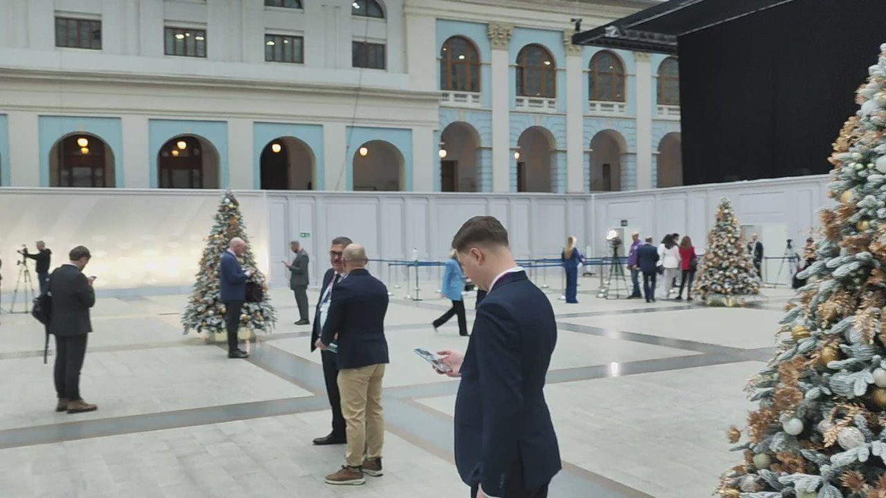 Журналисты настраивают оборудование, повторяют вопросы, записывают первые репортажи перед началом прямой линии с Президентом