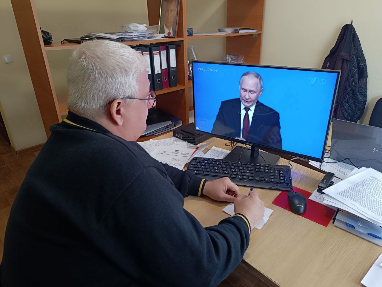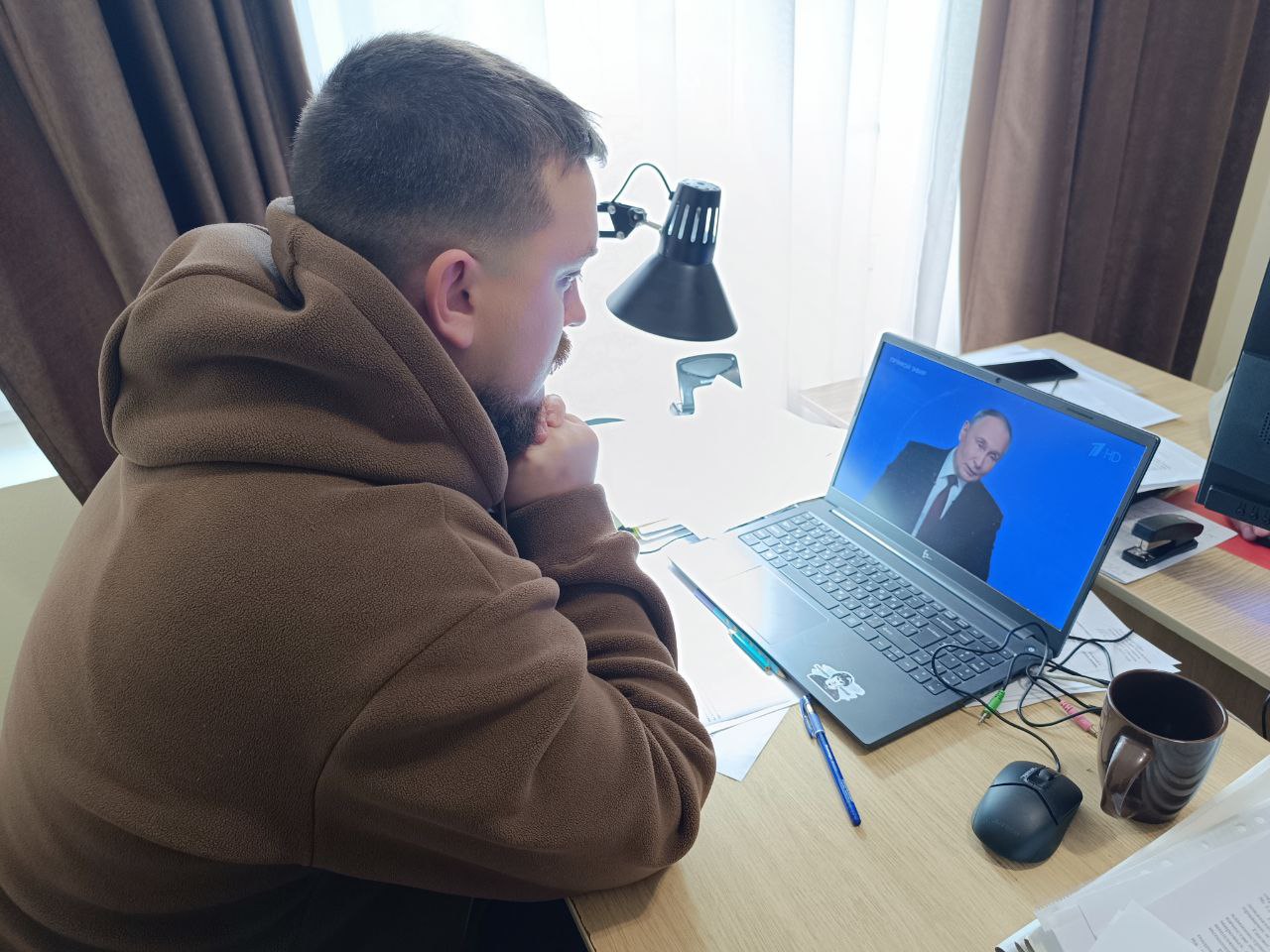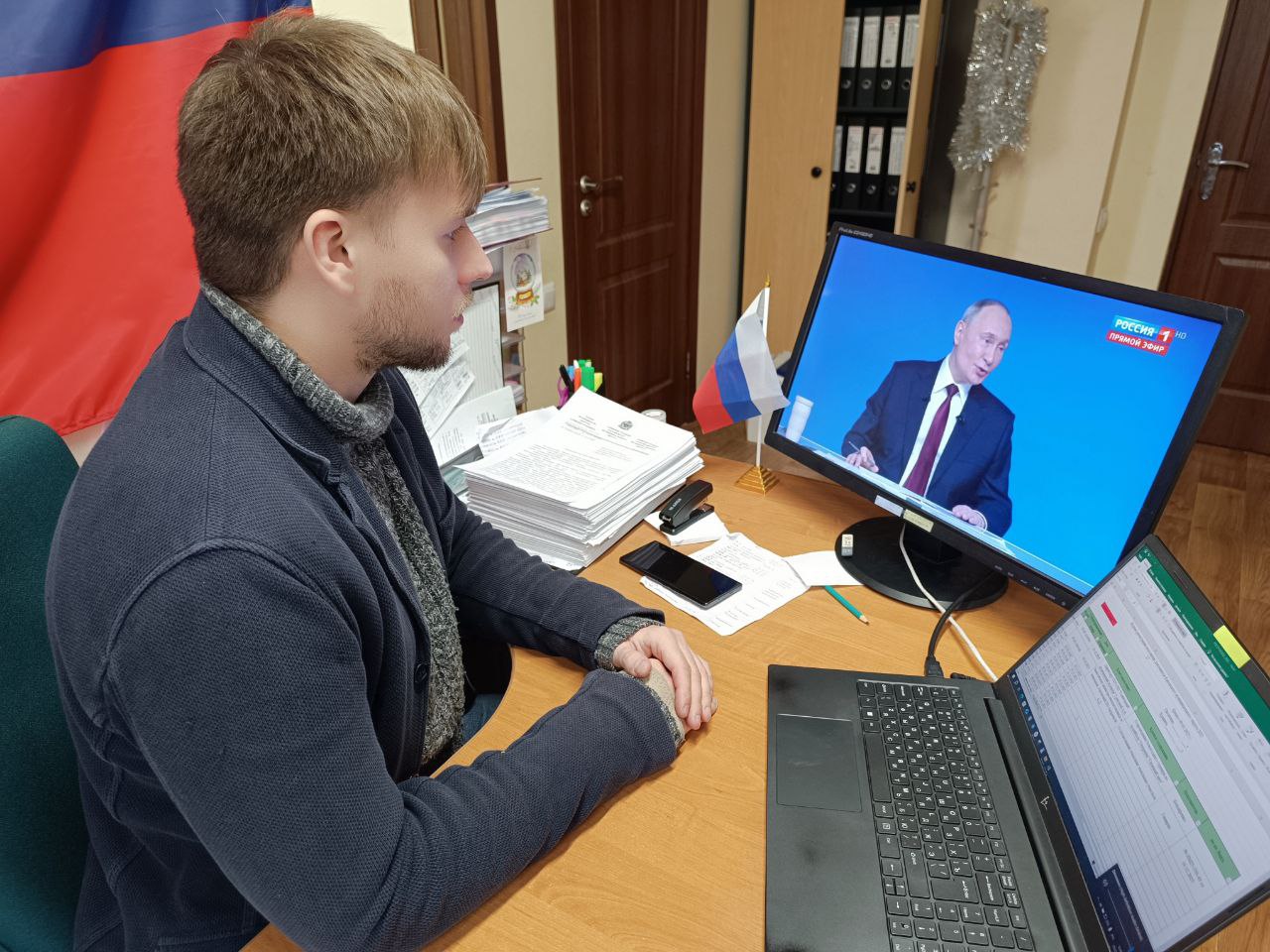 Вся команда администрации Каховского округа в режиме реального времени следит за прямой линией «Итоги года с Владимиром Путиным».