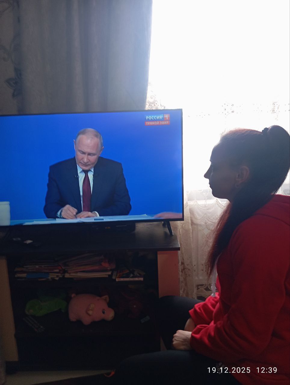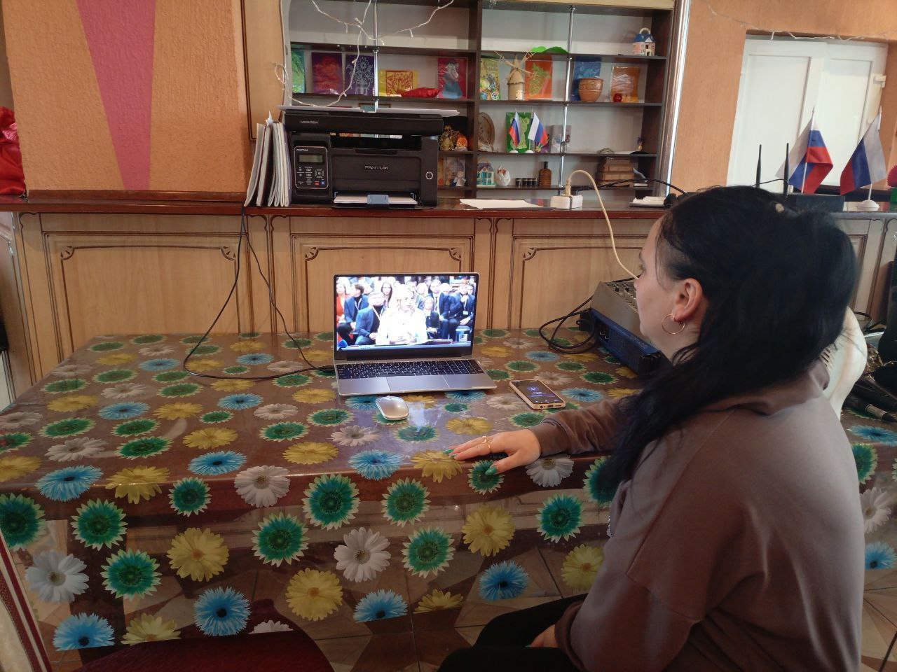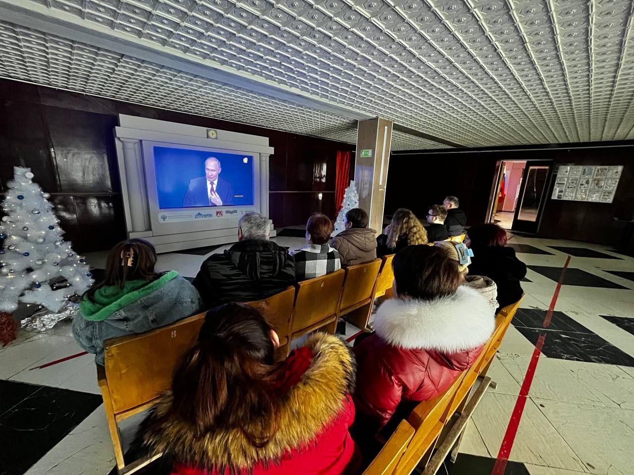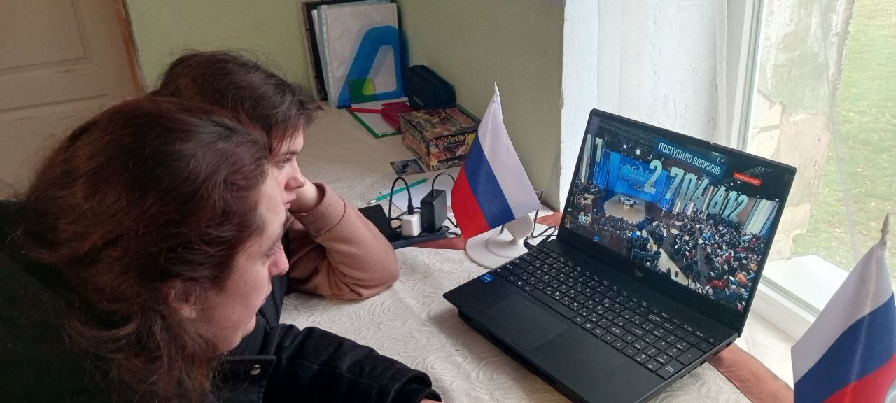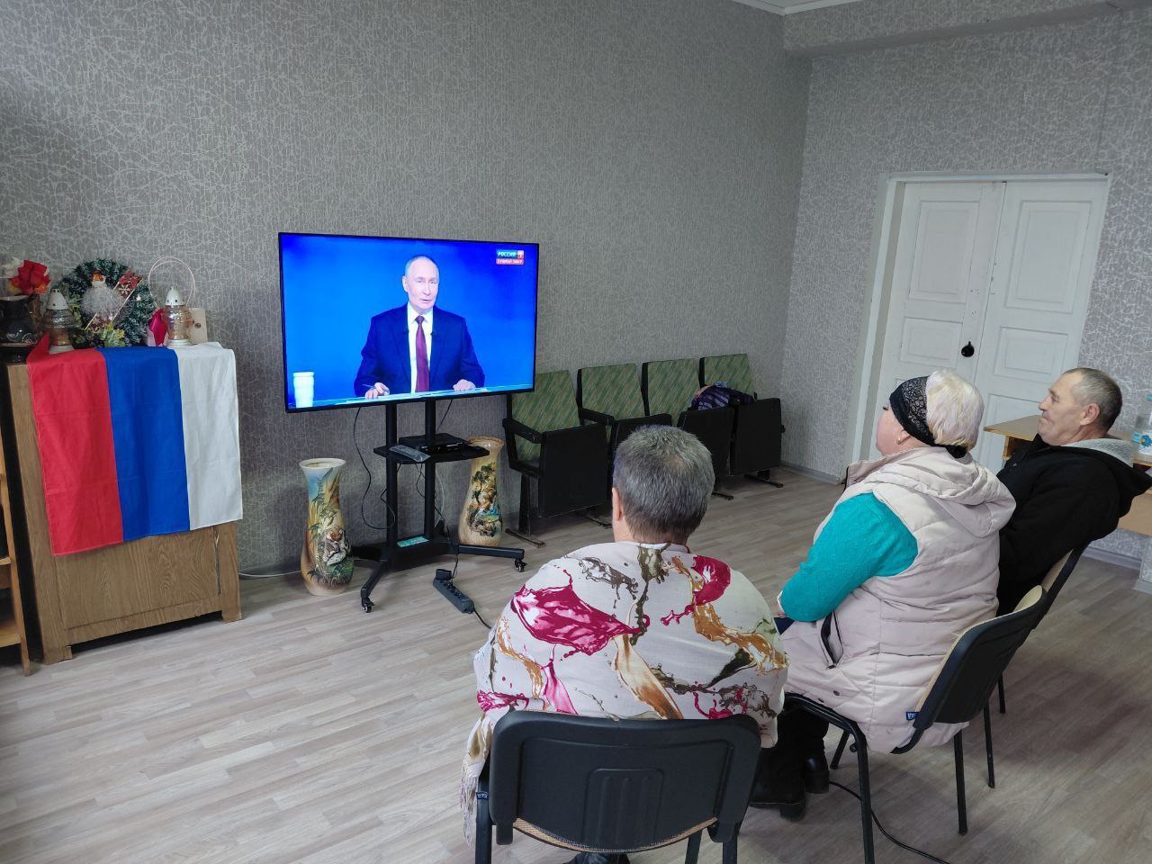 Сотрудники Каланчакского Центрального Дворца культуры и его филиалов смотрят прямой эфир «Итоги года с Владимиром Путиным».
