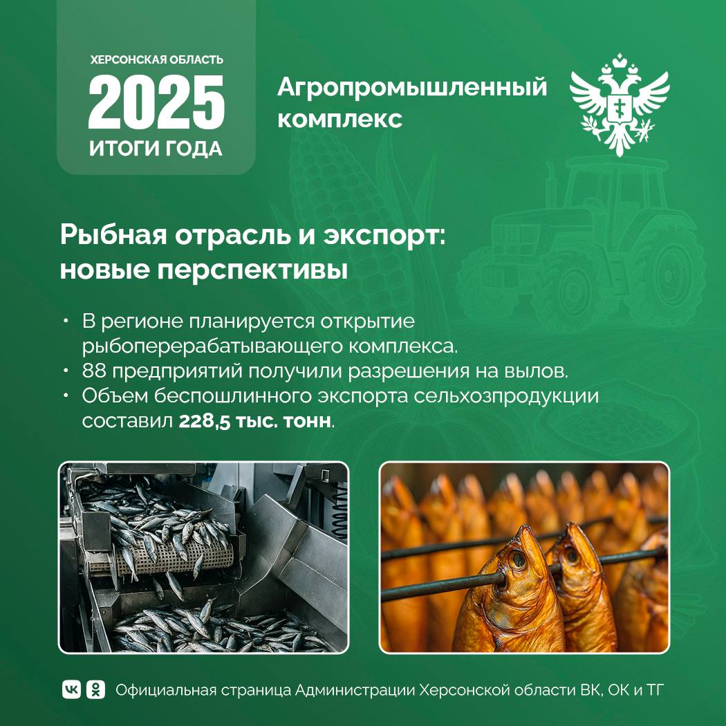 Уходящий 2025 год стал очередным этапом устойчивого развития и модернизации агропромышленного комплекса Херсонской области.