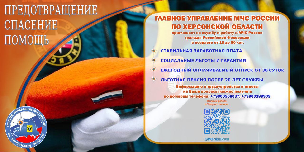 Главное управление МЧС России по Херсонской области приглашает на службу граждан Российской Федерации в возрасте от 18 до 50 лет!