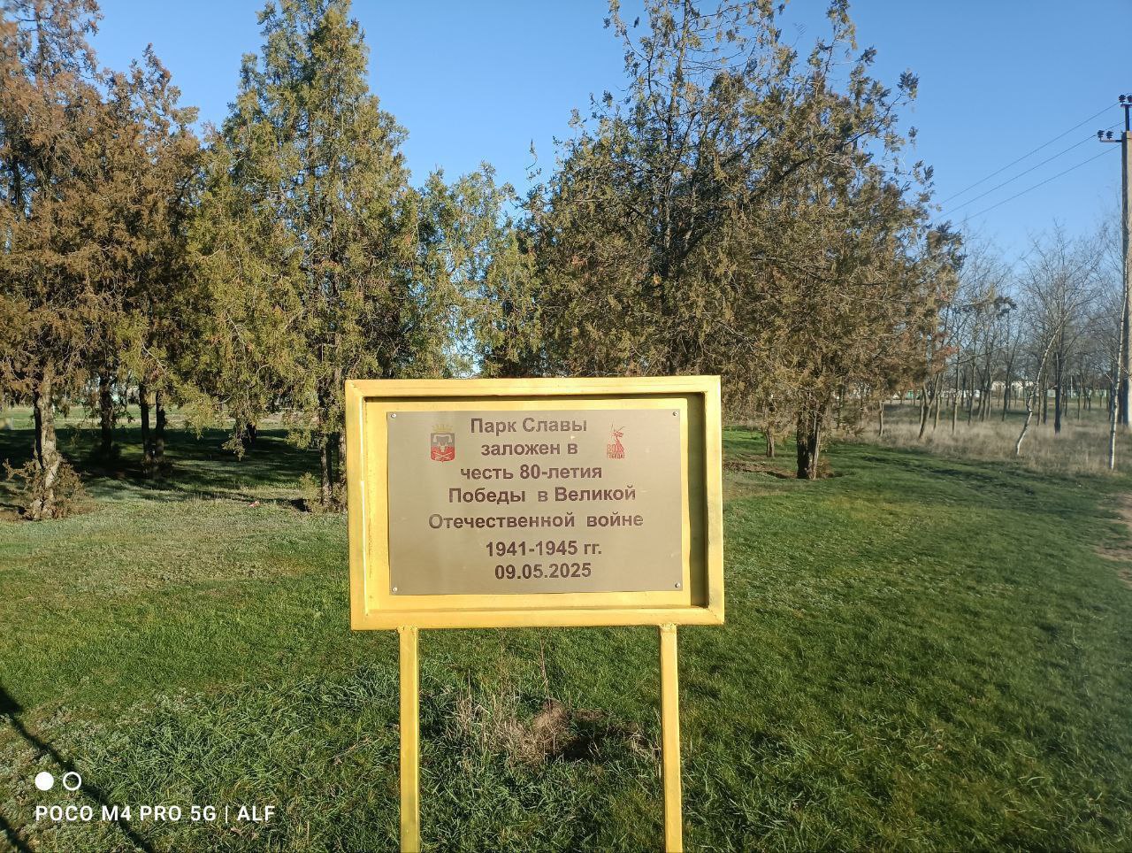 Парк Славы — место особое. В преддверии 80-летия Победы здесь был заложен Сад памяти. Сотрудники администрации вместе с жителями высадили 80 дубов. Всё лето, несмотря на жару и засуху, деревья поливали — помогали коммунальщики, фермеры и сами жители.