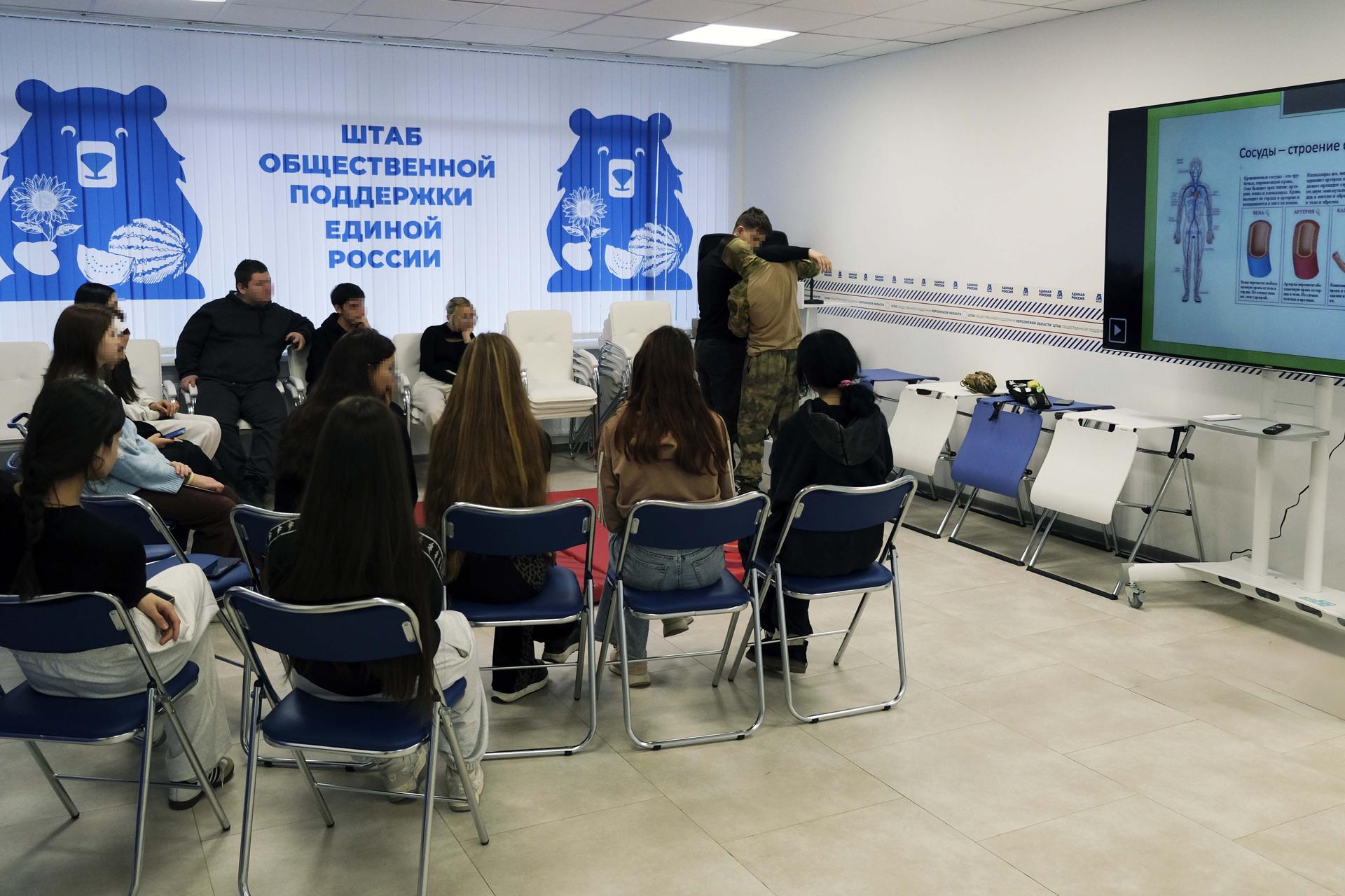 В Геническе на базе штаба общественной поддержки «Единой России» состоялось практическое занятие для первокурсников медицинского колледжа. Специалист из регионального Управления Росгвардии показал будущим медикам основы тактической медицины - оказание первой помощи в экстремальных условиях.