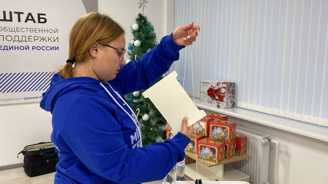 На одной из площадок штаба волонтёры готовятся к новогодним поздравлениям: фасуют подарки для многодетных и социально незащищенных семей, детей с ограниченными возможностями здоровья и семей участников СВО. Один из добровольцев студент Генического техникума Юрий Васильев. Он активно участвует в общественно-значимых мероприятиях округа и региона, участвовал в плетении сетей и изготовлении сухих душей для бойцов на передовой.