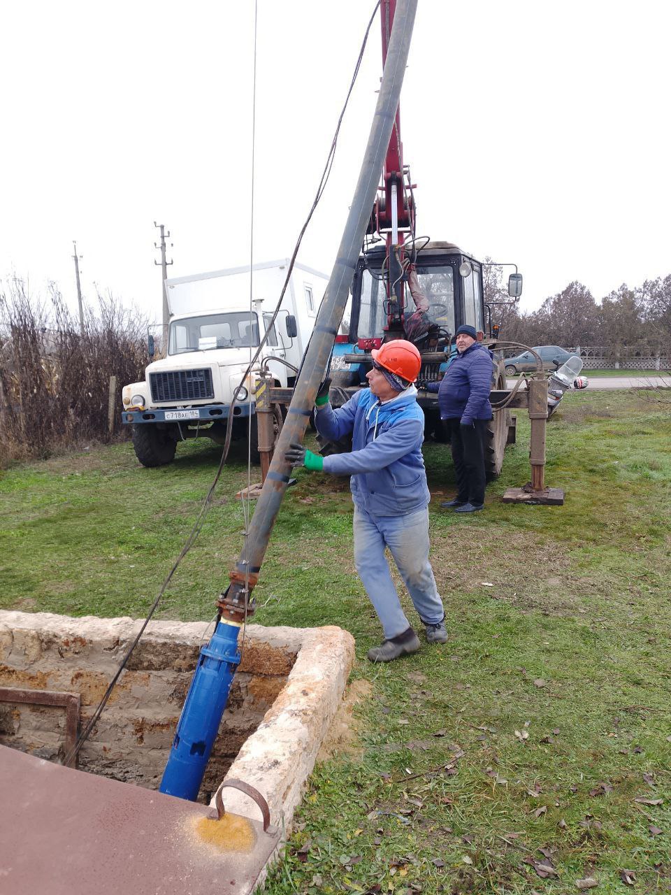 В посёлке Каланчак на одной из скважин проведены работы по замене неисправного насоса и установке обратного клапана, сопровождавшиеся сварочными работами. Все ремонтные работы осуществлялись без полного отключения воды - давление в сети было временно понижено, а по завершению ремонта полностью восстановлено.
