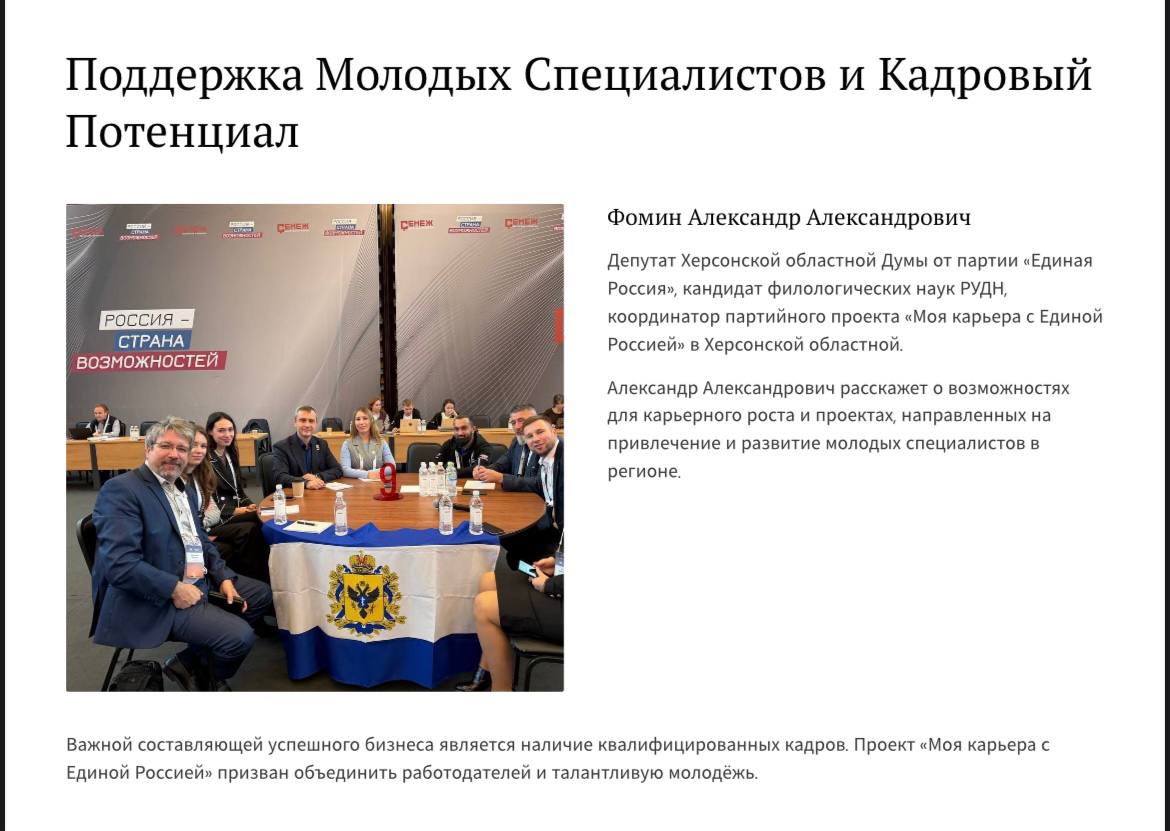 Со своей стороны, как координатор партийного проекта «Моя карьера с Единой Россией», выступил с докладом и рассказал московским коллегам о том, что ситуация в Херсонской области действительно уникальна.