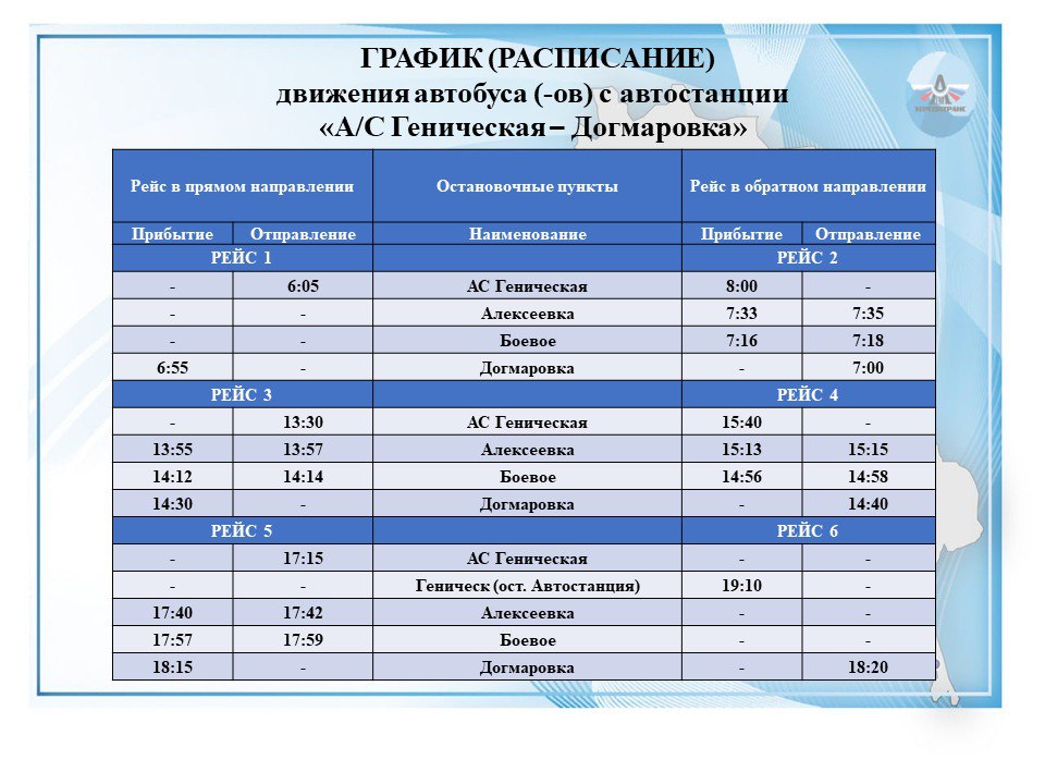 Маршрут следования:А/С Геническая Алексеевка Боевое Догмаровка