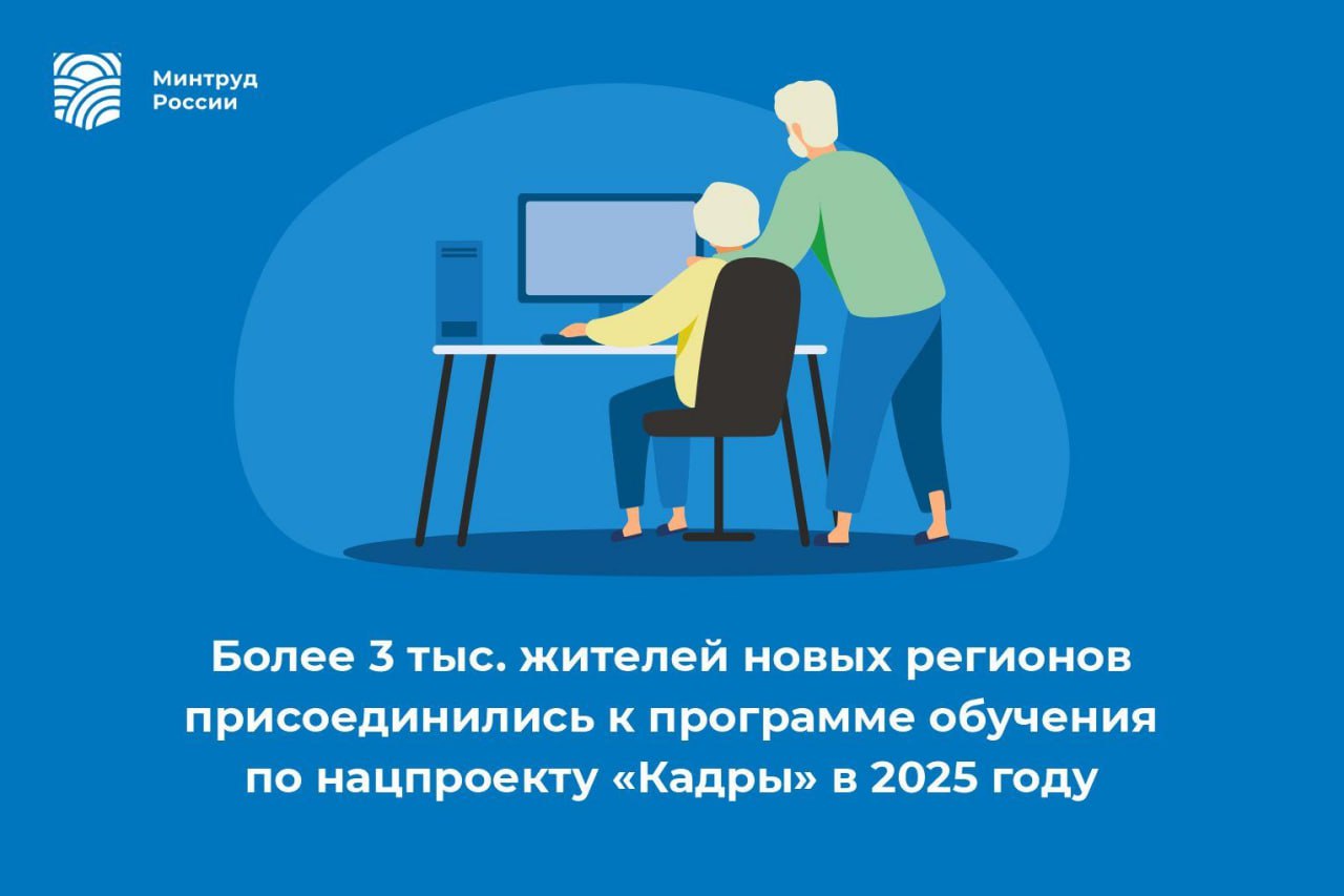 В 2025 г. более 1,3 тыс. жителей новых регионов старше 50 лет и предпенсионного возраста обучились по нацпроекту «Кадры»