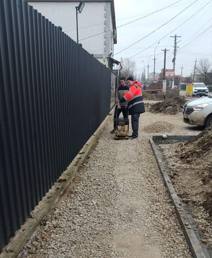 выравнивание газонной части после прокладки труб в траншеях и другие работы по благоустройству города.