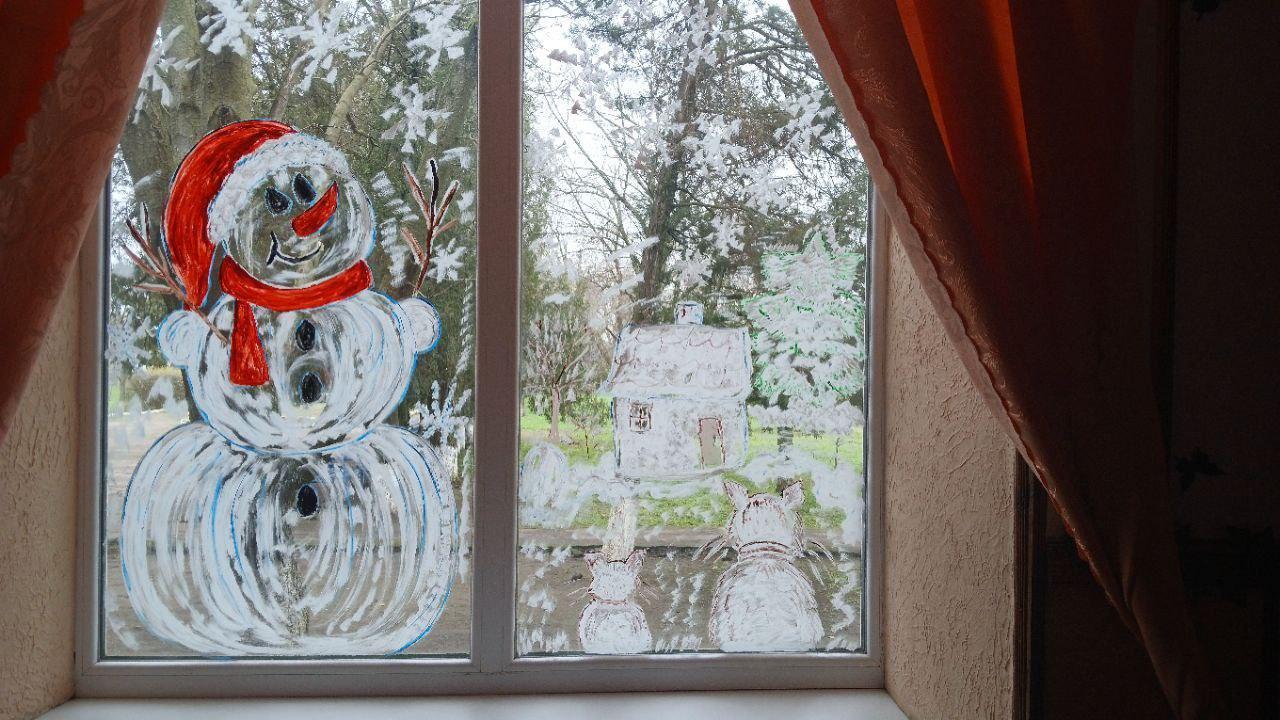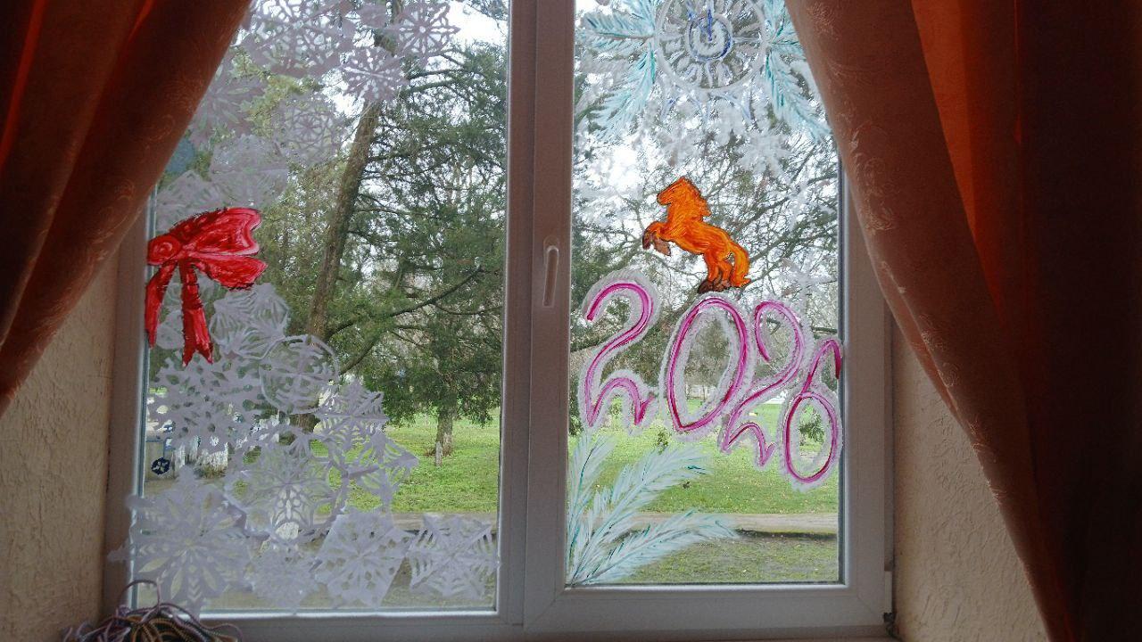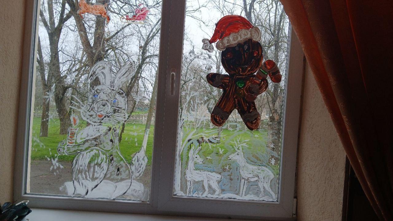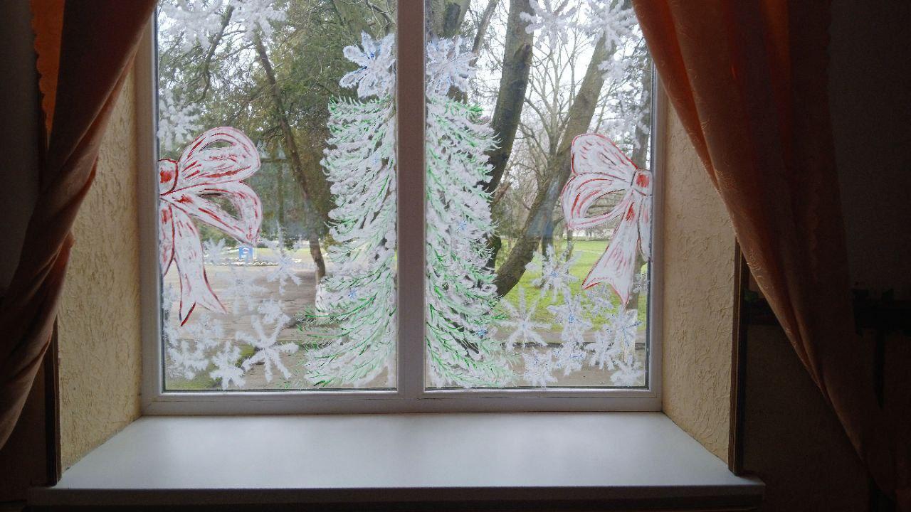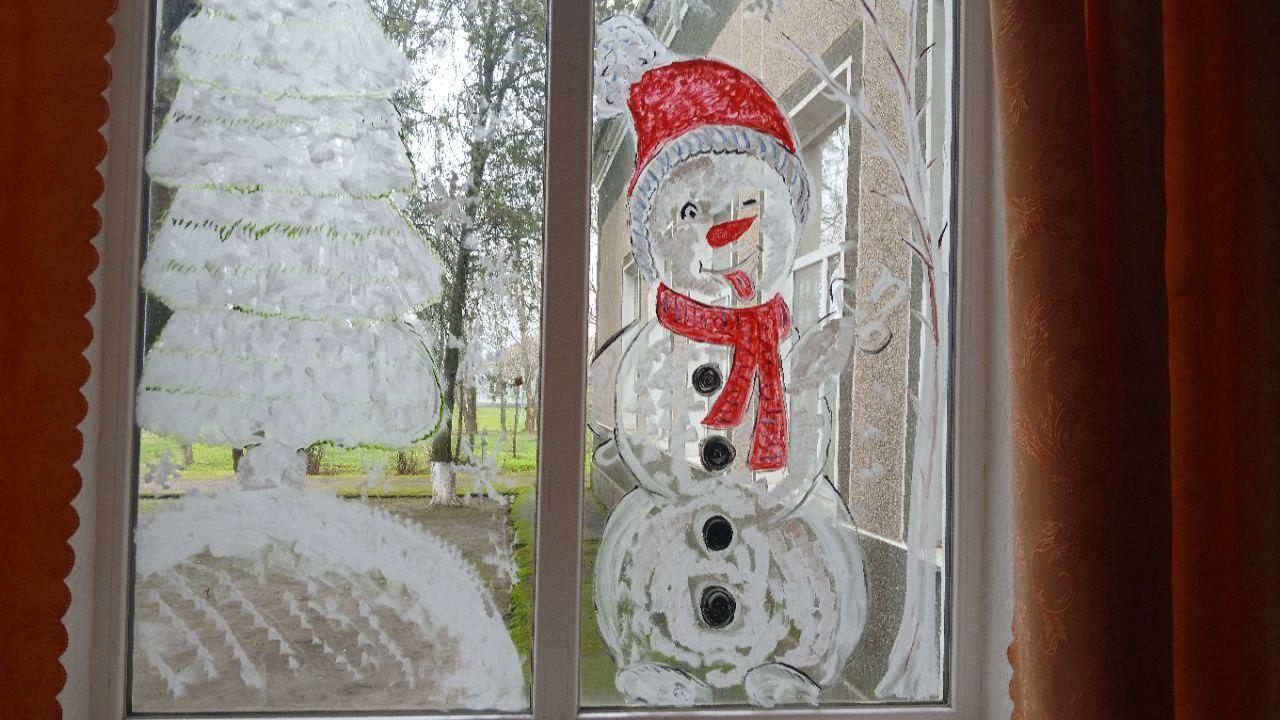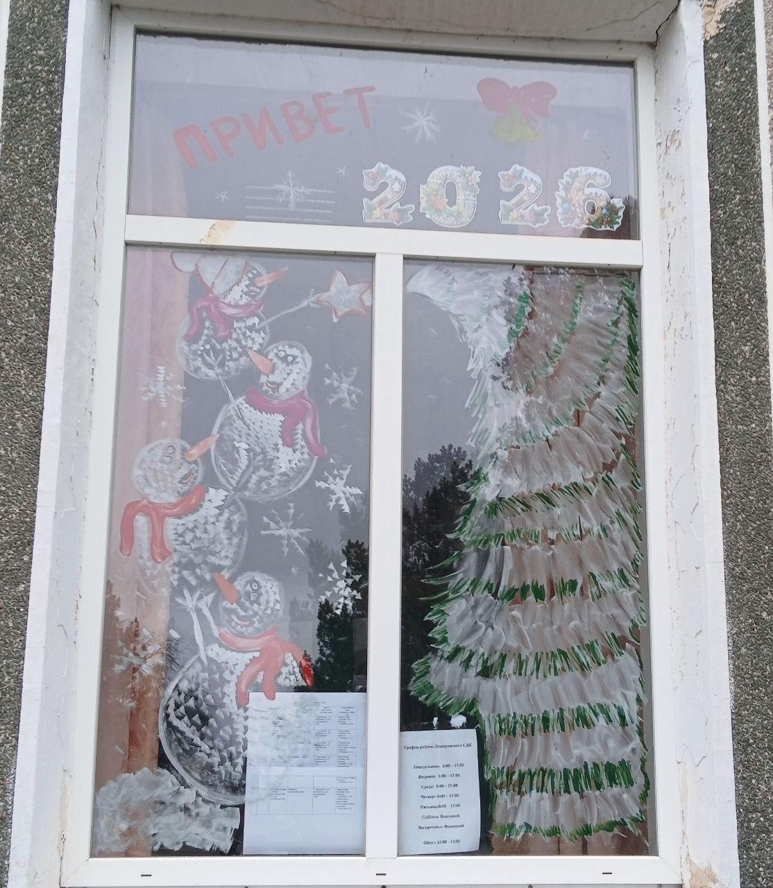 В Доме культуры украсили окна здания яркими новогодними рисунками, которые напомнили всем о чудесах зимнего праздника.