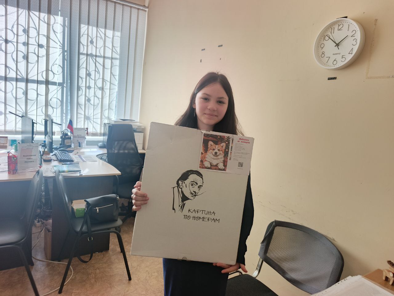 Девочка очень любит заниматься творчеством: собирать мозаику, рисовать, делать поделки, особенно ее увлекает тема животных. С удовольствием передал ей творческий набор для рисования. Договорились, что как только работа будет готова-обязательно покажет!